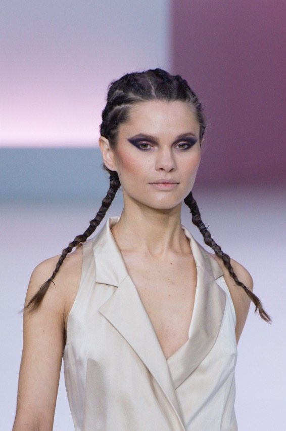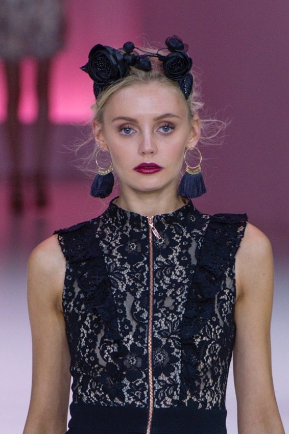 The second look for the show saw the focus on the lips with a bold mulberry lip making its way down the catwalk. “Statement lips are definitely a must this season, classic reds but my most favourite would have to be the vampy oxblood. This is statement piece would be definitely be a signature this season”, says Ross who paired the lip with a timeless nude eye. To achieve this look Ross used the recently launched Vernis A Levres Vinyl Cream No. 401 ($55). The high coverage liquid lip colour offers the ultimate shine, comfort, and all day wear. The team created the eyes using two products: Couture Mono No.4 ($49) and Babydoll Kiss & Blush No.7 ($60)