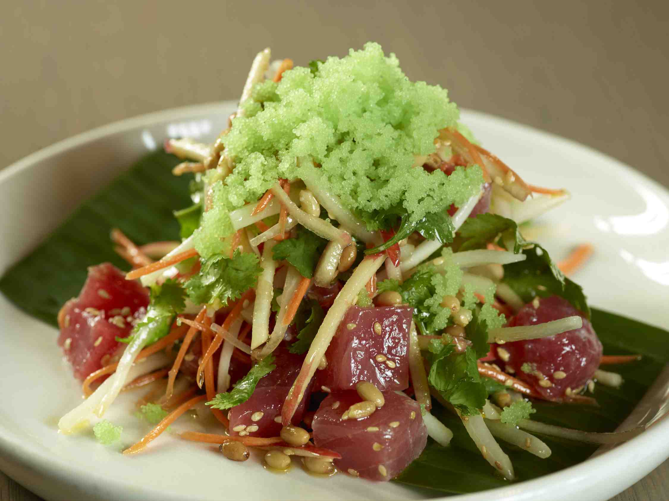 – Yellow fin tuna, apple, wasabi and ponzu salad