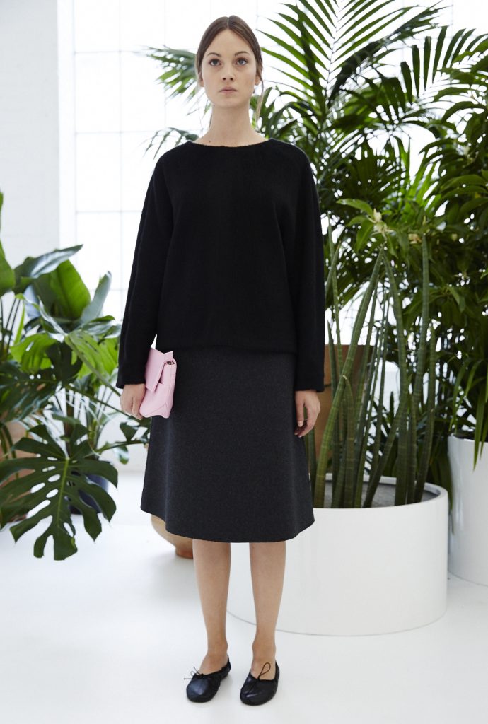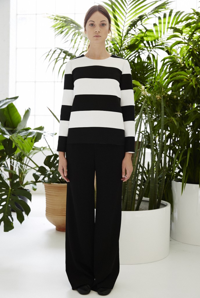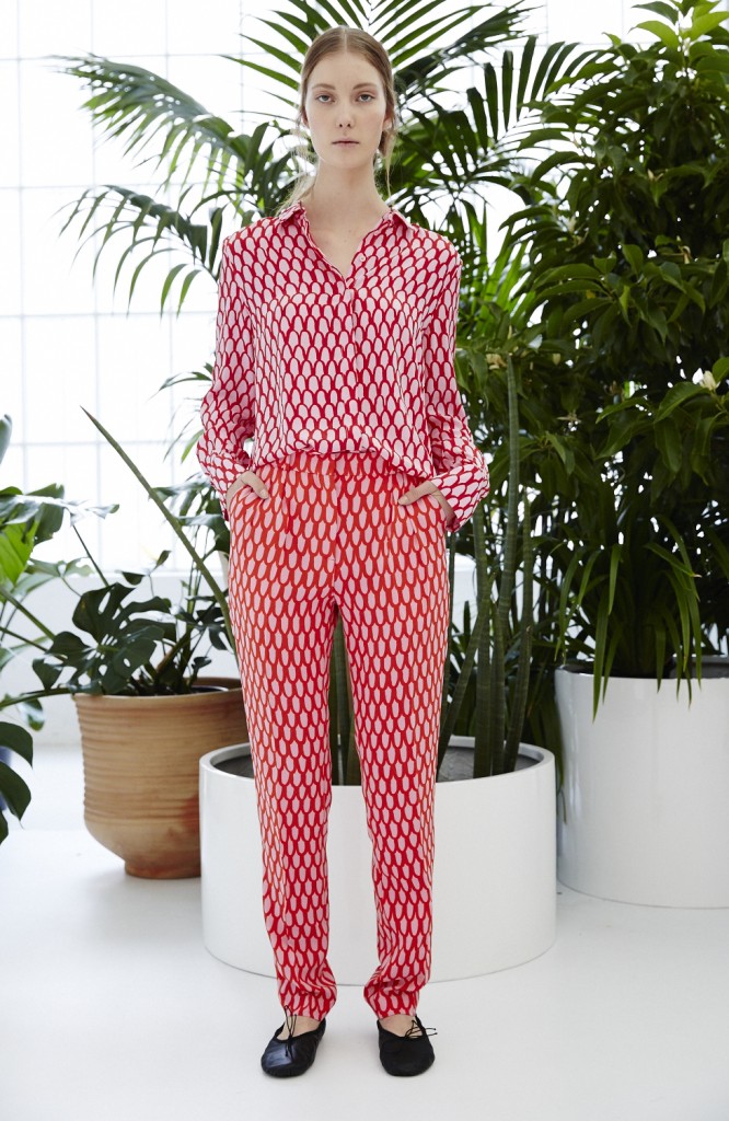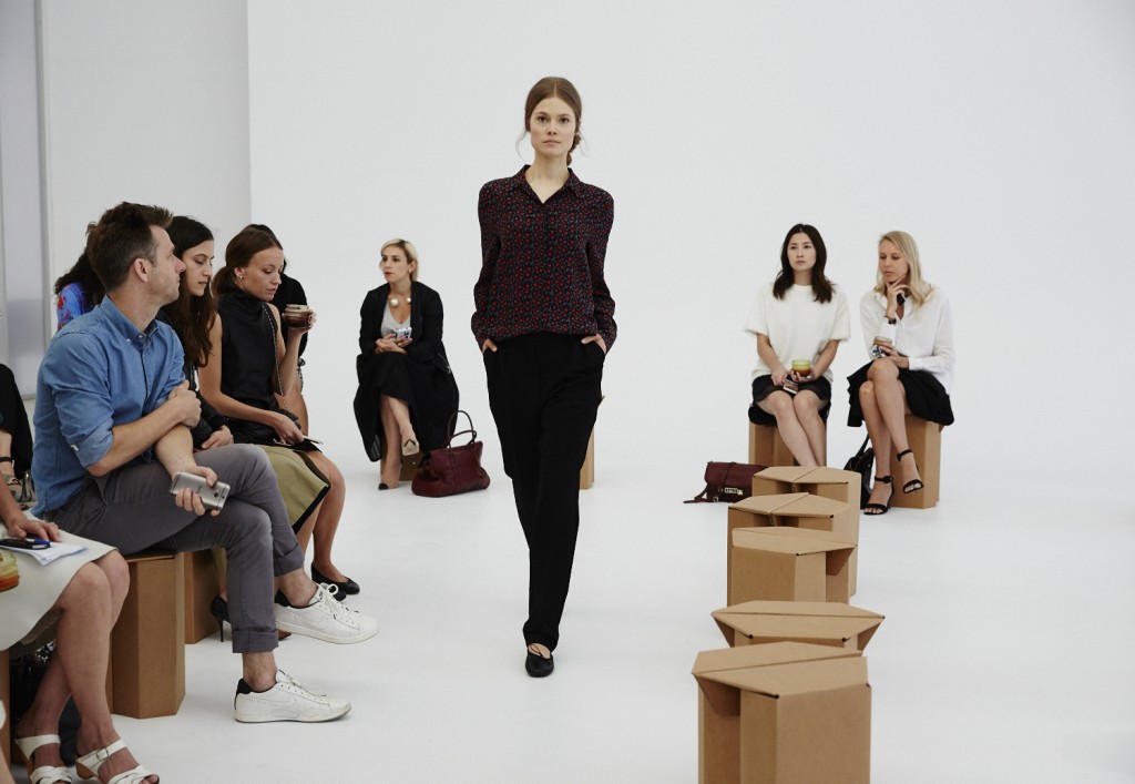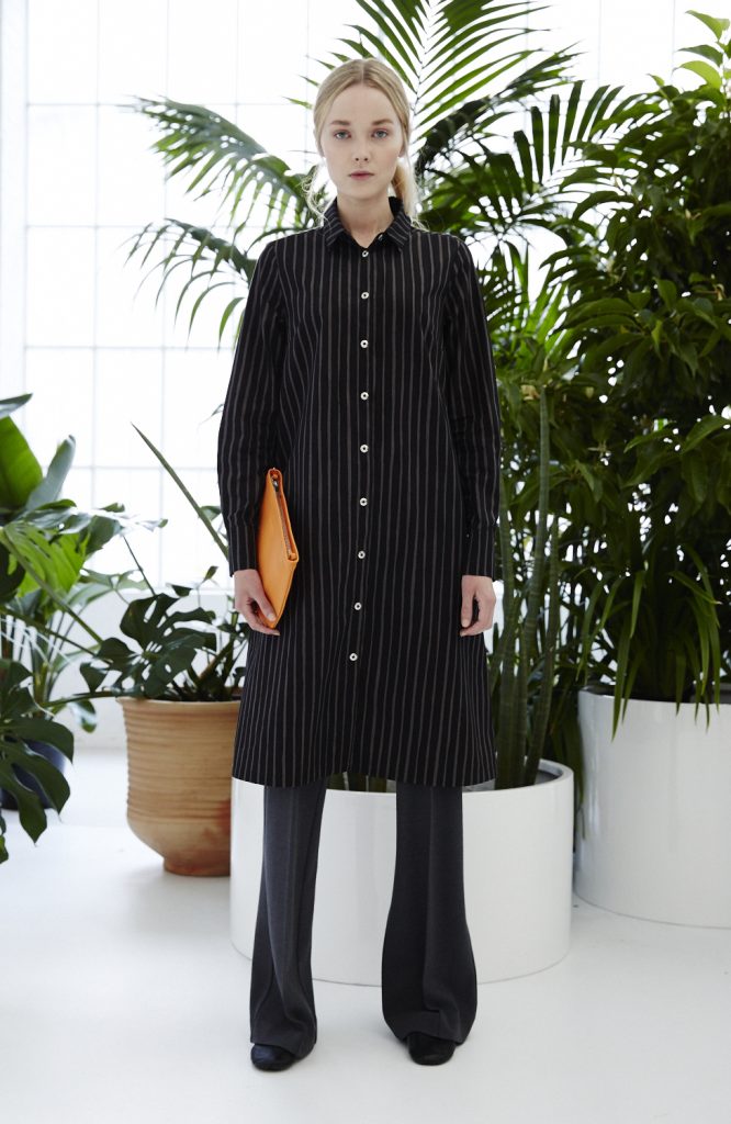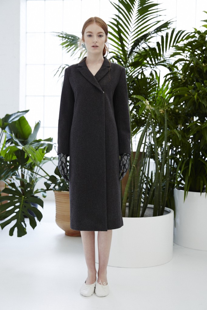 The collection was presented during a model presentation styled by Kelvin Harries. Silks, leather and wool were layered to created geometric lines and a relaxed aesthetic for each look.
