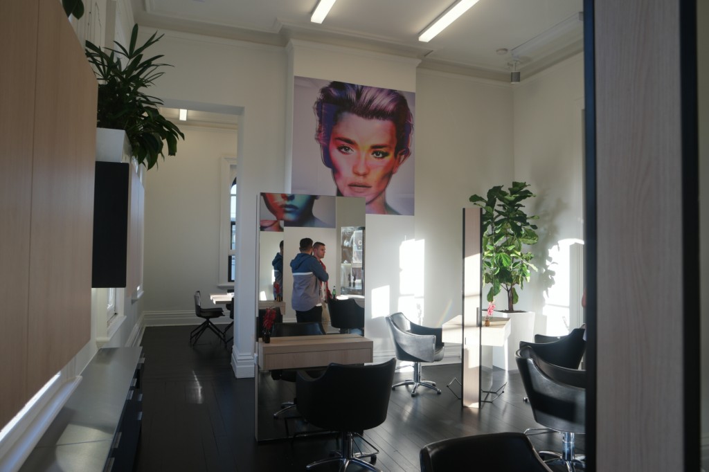The neon lit up ‘HAIR’ sign is hard to miss once you step inside the newly refurbished location, with monochrome walls and metallic details defining a fashion-forward feel. Walking through the open space each section had designated stations. From cutting to blowdry bars and colour stations, this new space is sure to impress.