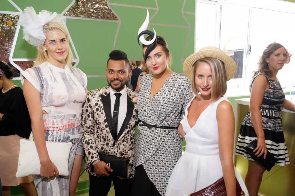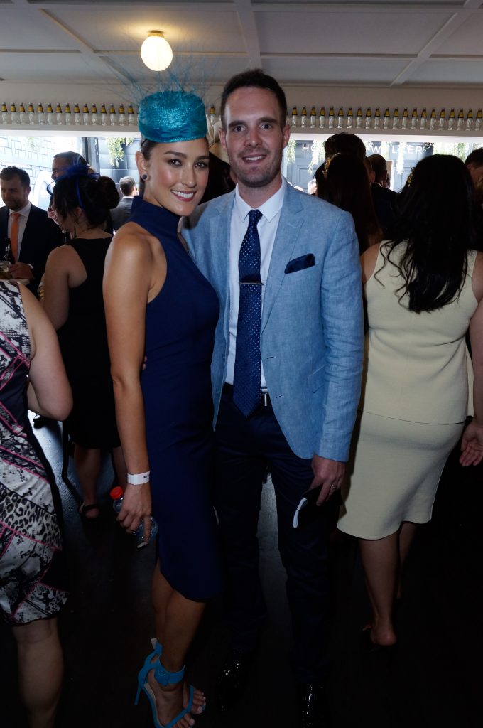 After the rush to reserve a space in one of the most covetable marquees in the birdcage for the Cup, Oaks Day at Emirates proved to be a more relaxed affair…but with no shortage of celebrity guests. German lingerie model Ann-Kathrin Brömmel was the special guest of the day, looking stunning in a fitted coral cocktail dress. Also spotted in the marquee was a demurely dressed Brynne Edelstein and Masterchef‘s Matt Preston.
