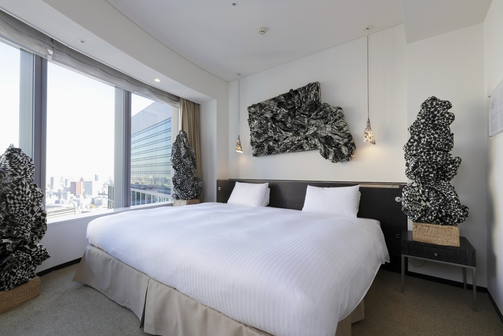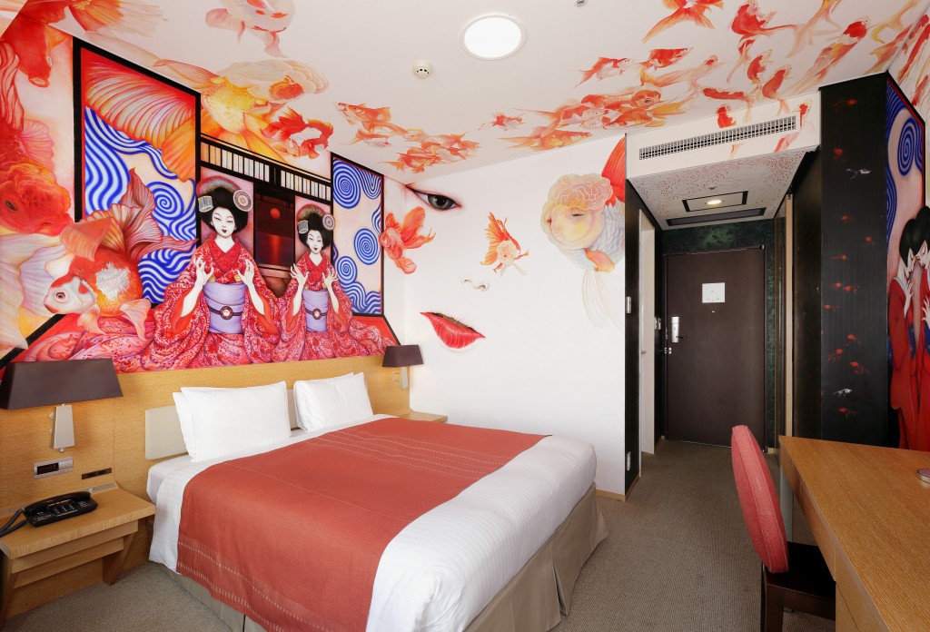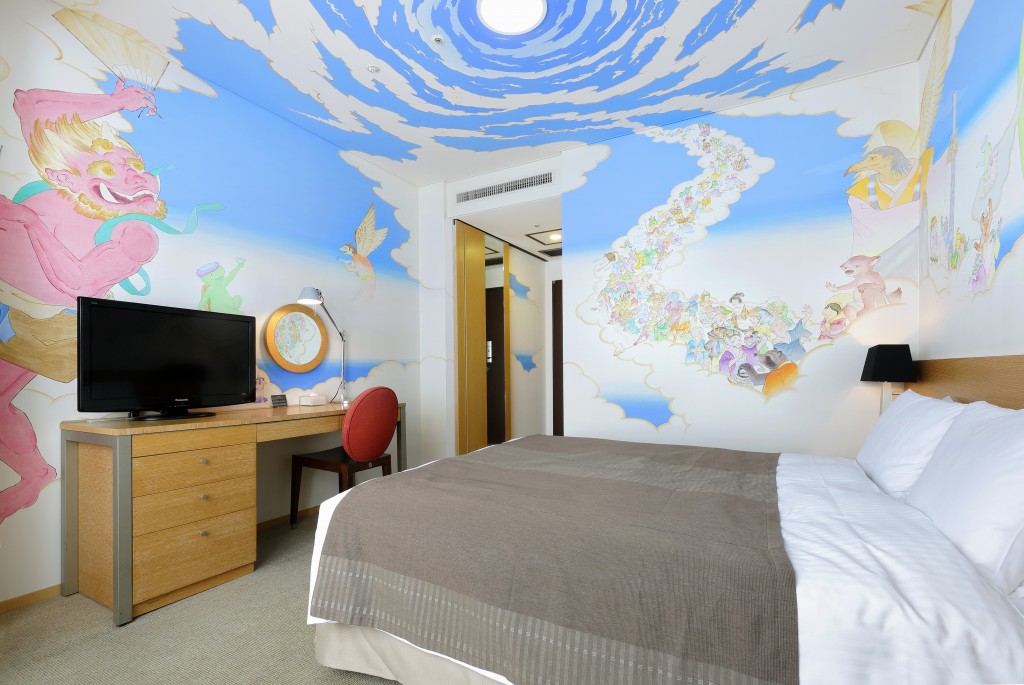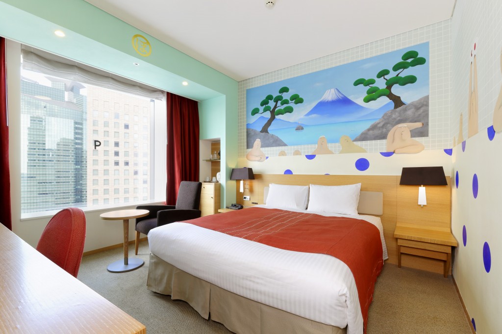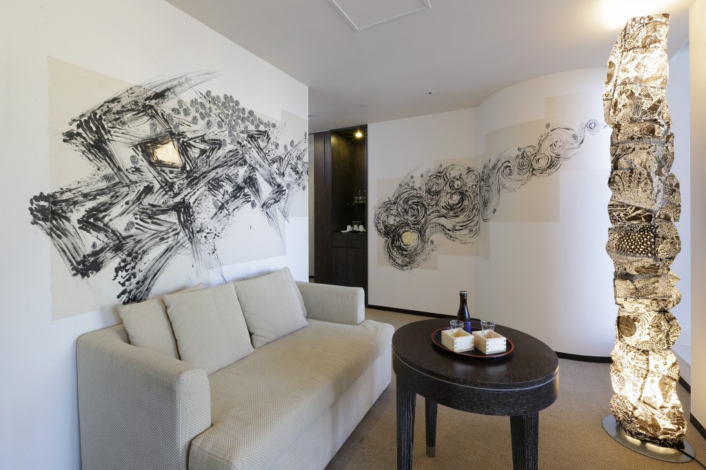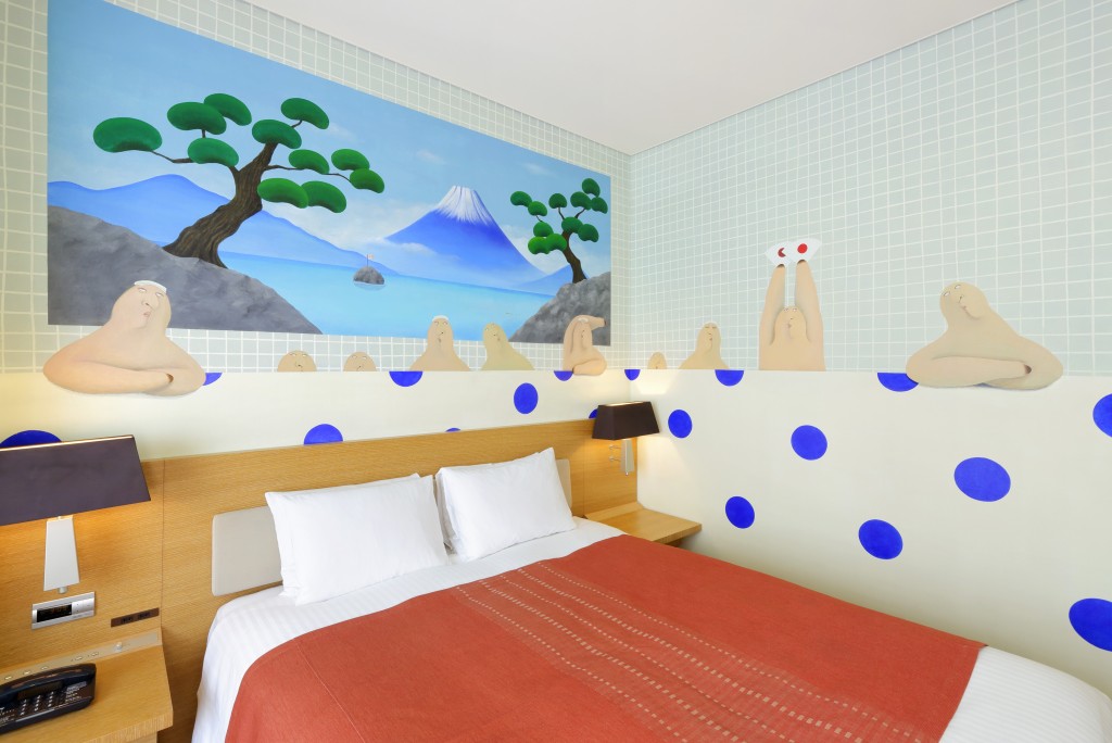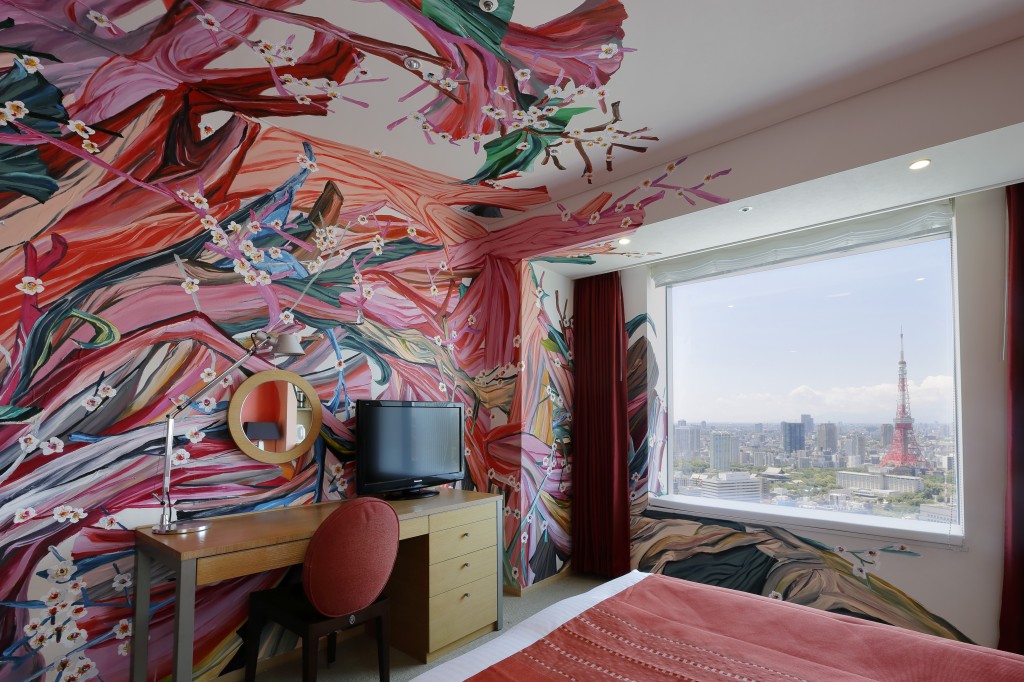What really sets the Park Hotel apart from other hotels it its ‘Artist in Hotel’ concept. Started in December 2012 to launch in at the same time as the hotel’s 10th anniversary, the hotel has recruited some of Japan’s top artists to decorate an entire guestroom on the 31st floor of the building. To date, 16 rooms have been completed, with all 31 rooms on the floor expected to be completed by the end of next year. Guests can book into stay in one of these special rooms, each having its own special design. This is the unique way the Park Hotel is celebrating Japan’s artistic talent and history with its many guests. Highlights include the Dragon Room by Kiyoko Abe which features a painting of a huge black dragon flying across the room, the Zen Room by Seihaku Akiba, the Cherry Blossoms Room by Hiroko Otake and the Public Bathhouse Room by Keiko Migita. These rooms all capture a unique aspect of Japan’s rich culture.