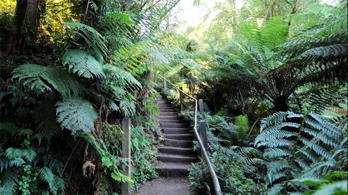 Around an hour from Melbourne CBD are the Dandenong ranges, a set of mountain ranges 35km out of the city. The 1000 step climb, a hiking trail popular with visitors and Victorians alike, allows you to experience the sense of exhaustion felt by Australian soldiers on the Kokoda Trail in World War II. The hike is around 2.8km, with a steep incline through the tree ferns and is recommended for those that are physically fit.