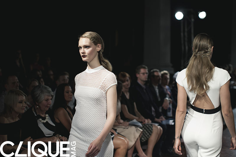 Hair and beauty looks were sleek, polished and kept clean to mirror the elegant styles presented on the evening. The team from Cloud Nine says of the look, “this sleek sophisticated look is relaxed and a bit seductive, and makes the most of clean lines and flawless angles.” The style described as “classic minimalism” is created with the Evo Icon Welder Hot Tool Shaper, Easy Tiger Smoothing Fluid and Helmut Strong Hairspray.