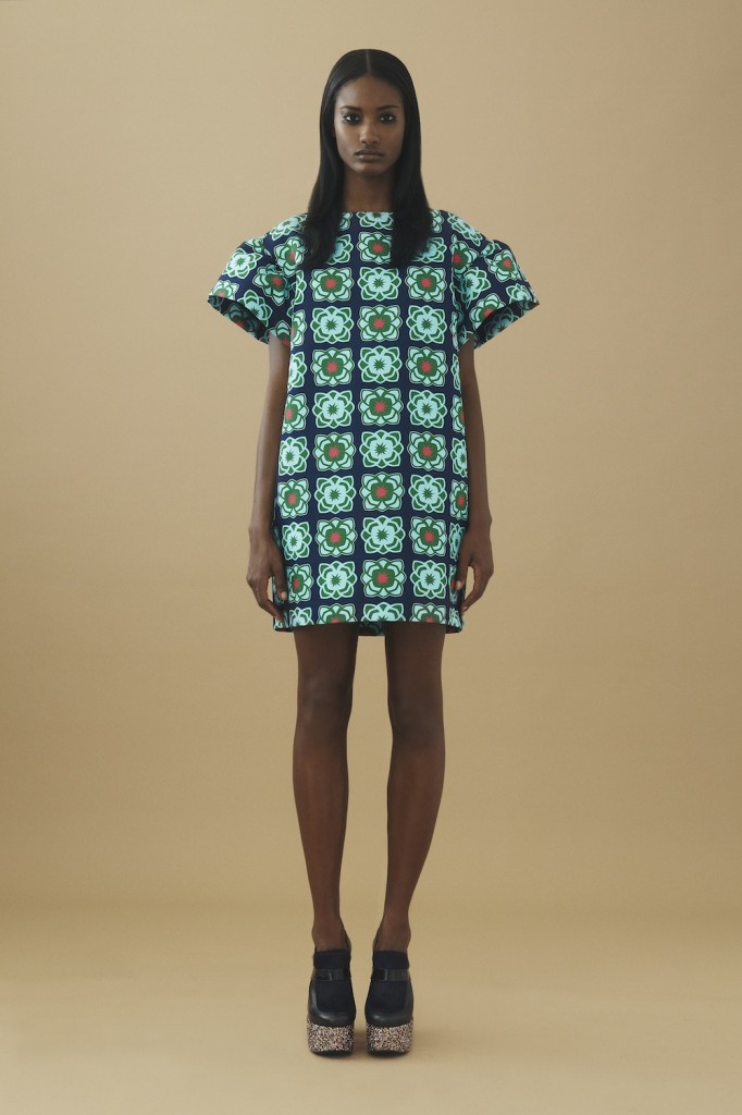 The “print de resistance” for this collection is clearly the tesselated cabbage flower print, like something straight off your nonna’s couch, the teal, orange and green geometric-floral print is strikingly ‘60s inspired, especially as paired with blown out mod silhouettes.