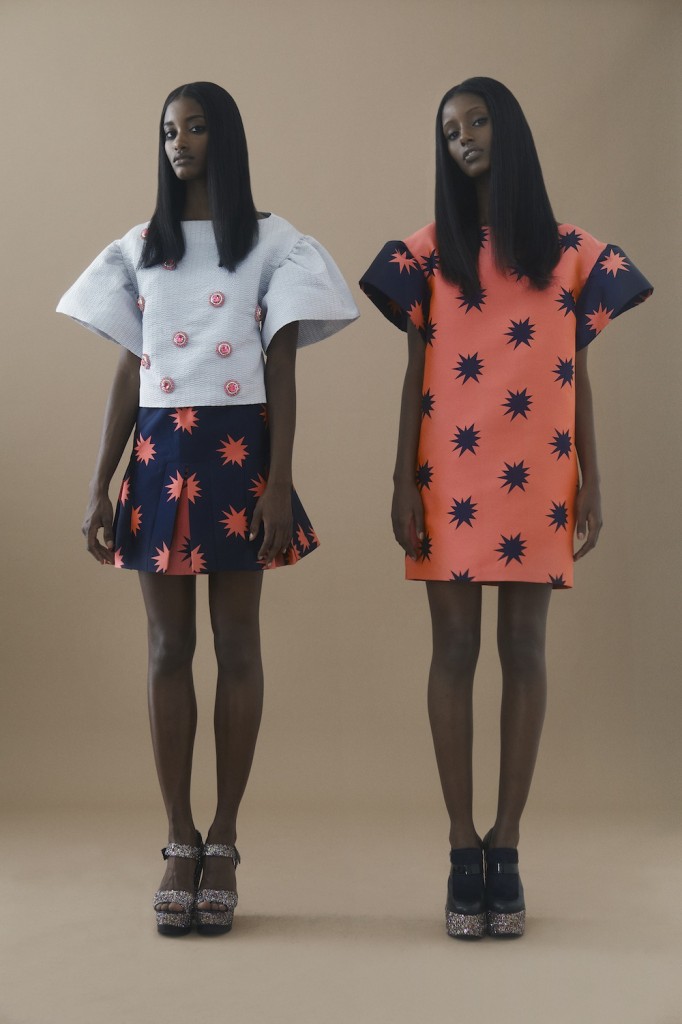 The House of Holland Resort 2014 “Baby Love” collection is a delightful circus of geometric prints, tessellated patterns, embellishments, volume and a colour spectrum that extends from salmon to teal green and lots of hot pink and navy in between.