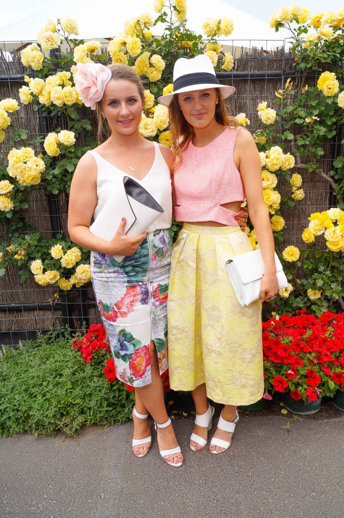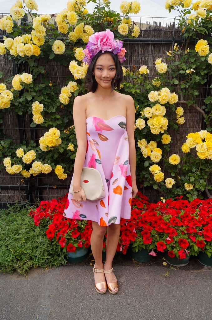 Well heeled Birdcage patrons opted for classic racewear silhouettes in modern textures and fresh colour palettes. Hemlines skimmed over the knee and midriffs were firmly tucked away. Headwear reached new heights, with the bright and beautiful mingling with the embellished and dainty.