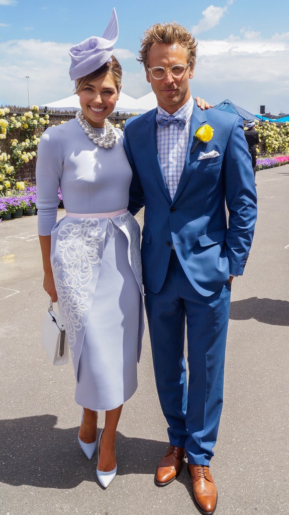Star stylist Lana Wilkinson stole the show in elegant sage green, pairing a timeless cut with an awe inspiring colour and structured, architectural headwear by Aniss. Real Housewife of Melbourne Chyka Keebaugh took on a “brighter is better” mentality in a stunning block coloured frock and matching fascinator. All eyes were on model Ashley Hart in the Swisse marquee, epitomising the classic race wear look of yesteryear in a mauve Mathieu Salem ensemble teamed with Kerrie Stanley millinery.