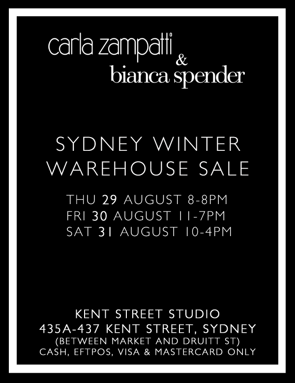 Carla Zampatti and Bianca Spender; two names synonymous with luxury Australian style. These women are pioneers of understated elegance and relaxed femininity. As the Carla Zampatti & Bianca Spender Winter Warehouse Sale begins this week, now is your chance to add a little slice of workable glamour into your own wardrobe. Don’t miss out on must have pieces, statement dresses, essential suiting and stunning evening wear for every occasion.