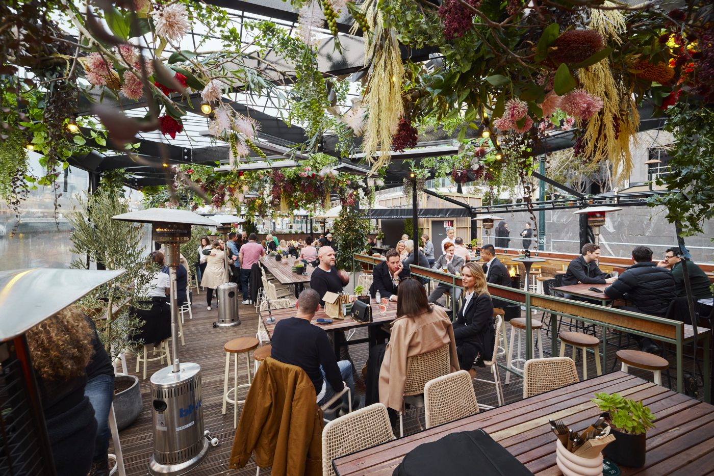 Throughout the colder months the bar and eatery is draped in gorgeous winter florals, with awnings and heaters helping to shield diners from the wintry chill. Rugs and blankets will be on hand to keep guests feeling cosy and warm during their visit, whilst taking in the stunning cityscape backdrop.