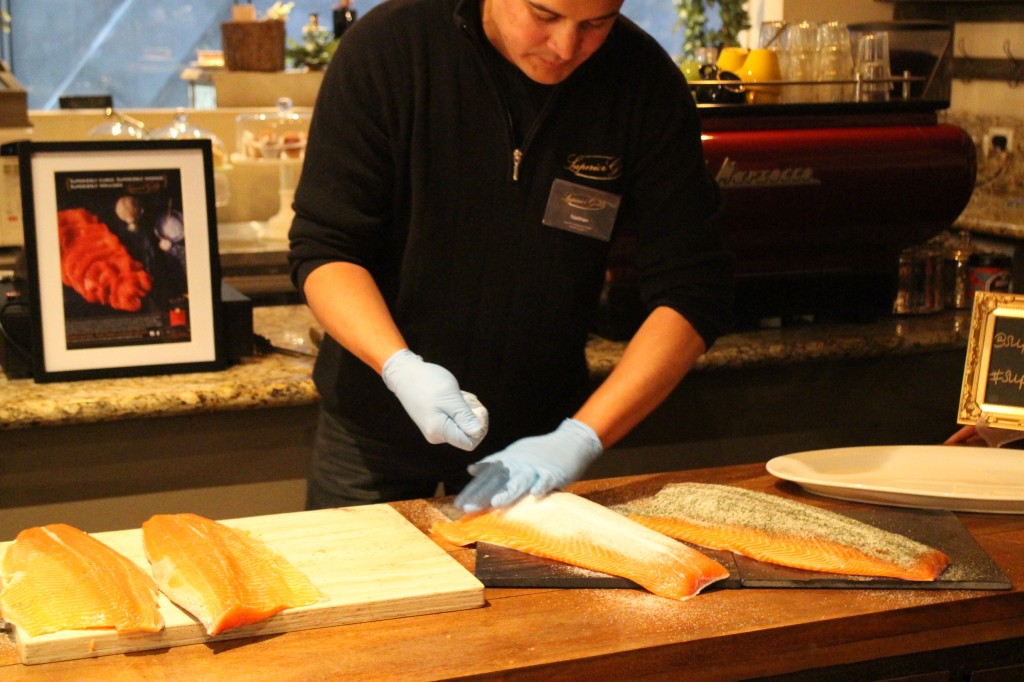 Nathan explained that before the salmon is smoked, it is cured with Australian sea salt and Bundaberg sugar for a minimum of 16 hours before it is double smoked using beechwood chips that are sustainably sourced. The end result is a smokey rich and succulent flavour smoked salmon.