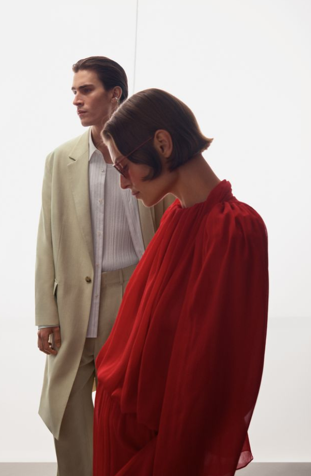 Drawing inspiration from the 1990’s, womenswear embraces elongated silhouettes; dramatic maxi-length skirts and an elegant fishtail dress with a structured hem take centre stage. Menswear echoes the fluidity of the womenswear collection, championing relaxed cuts through loose-fitting overcoats and refined silk shirts. Completing each look, COS introduces sunglasses to its Atelier offering for the