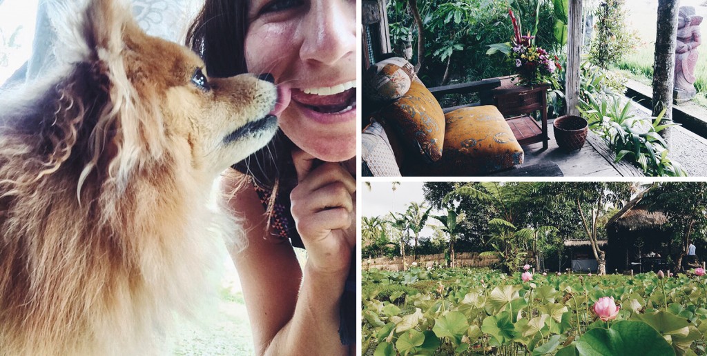 Downtime was spent eating snake fruit in the bale – a large open cabana with pillows and lots of great books to read. Often her cute dog Cantik would come hang out and demand to take selfies.