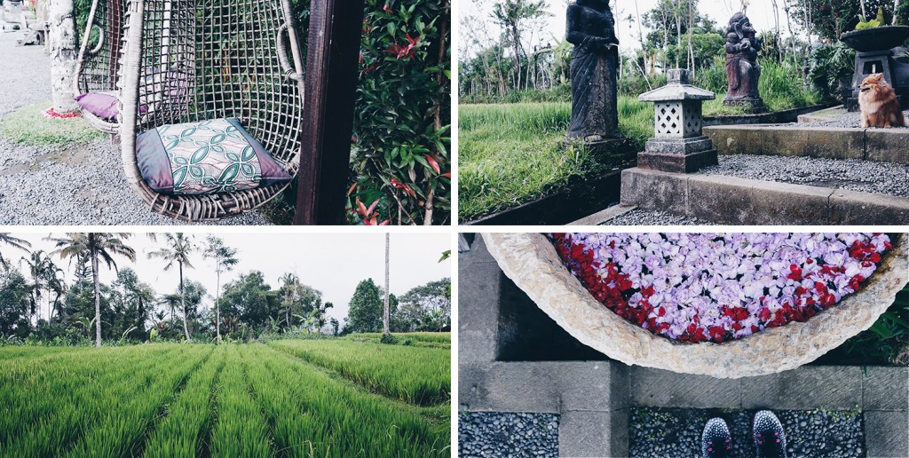 The rest of the grounds were phenomenal. The large rice paddy fields were often being tended to by locals, meals took place at a huge outdoor dining table surrounded by lily ponds then there were several fields for working out and a raised open aired yoga studio. Actually bliss.