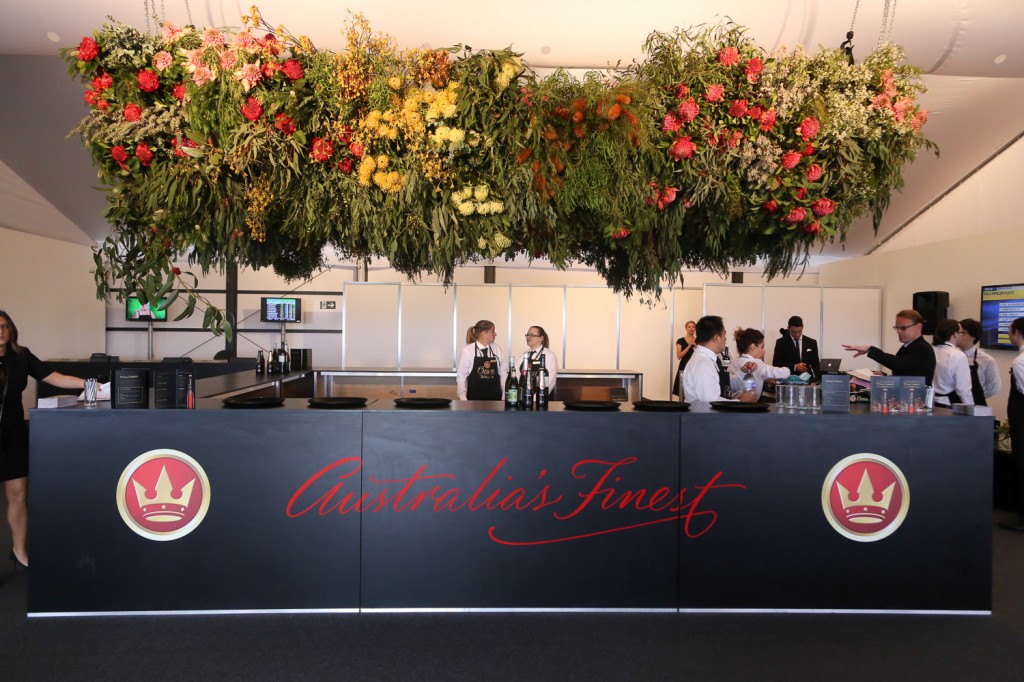 With unparalleled views of the racecourse, the Crown Golden Ale Marquee within the prestigious Heath Enclosure was undoubtedly the place to be on Cup Day. The custom designed, indoor/outdoor facility played host to 250 VIP guests including stunning ARIA Award winning songbird Delta Goodrem and cricketing legend Michael Clarke. Raceday revellers flocked to decking to watch showstopping races before heading back inside to bask beneath an incredible overhead, suspended Australian flora installation above the custom designed bar.