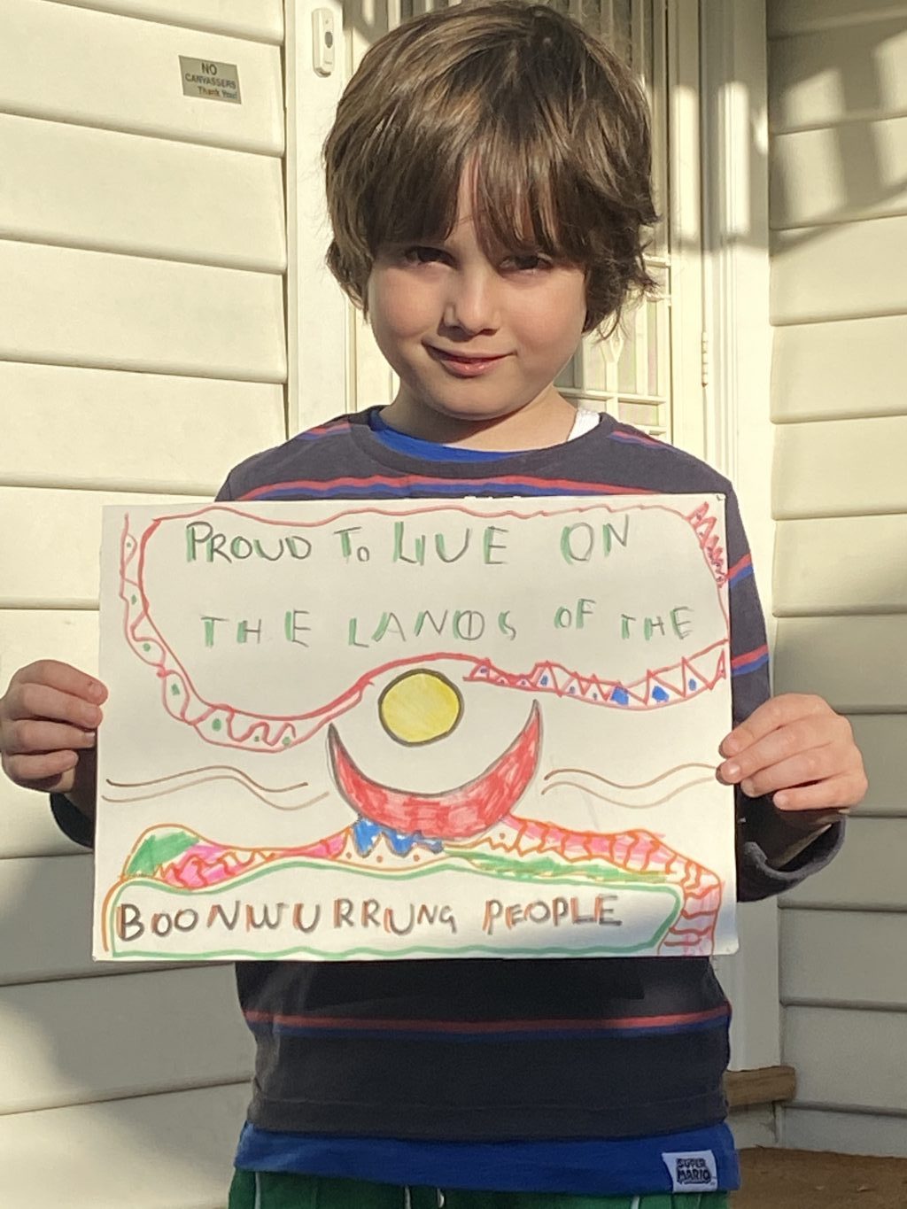 2. Create a sign – this can be as simple as crayon or texta on paper or beautifully painted on canvas or on a wooden plaque. Get some paper, canvas or wood and get creative, paint your sign that celebrates and acknowledges the Traditional land where you live and work. Put your Signs of Respect out on your fence in your front window or on a tree and show the World you’re CulturedUp!