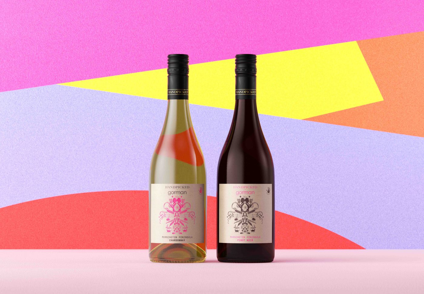 The bespoke wines and labels are Lisa Gorman’s first foray into food and beverage, and have been developed in conjunction with Handpicked winemaker, Peter Dillon, to reflect the fun and bold style of Gorman and its Victorian provenance. Both labels feature a signature Gorman oatmeal toned background with bold black and pink print. The 2018