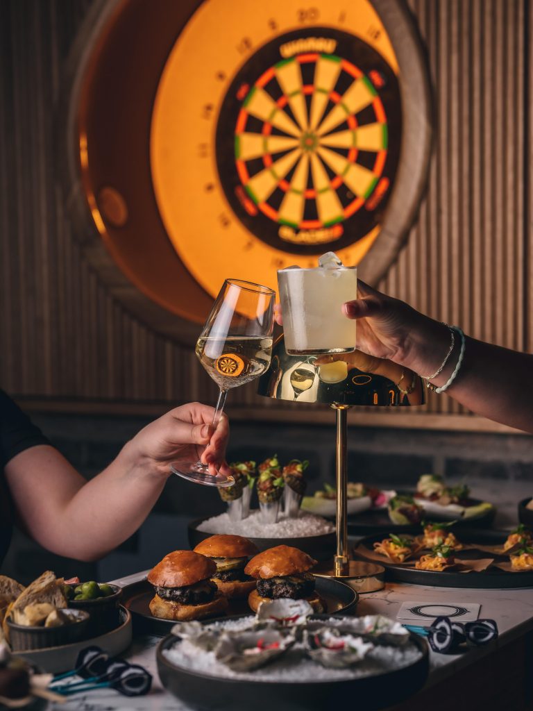 Designed by Executive Chef Anthony Charman, Oche’s elevated culinary offering caters for fine-dining enthusiasts and requires no cutlery at all, meaning guests can sample morsels in one hand while holding a dart in the other. The innovative menu is crafted using local produce and features soon-to-be-favourites like Cloche Smoked Salmon Cones with Gin-Cured Salmon, Kohlrabi and Liquorice Remoulade, with Pomegranate Pearls; Crispy Fried Kataifi Duck with Goats Cheese, Sautéed Asparagus and Blueberry Jus; a dizzying array of inventive pizzas; and – because there’s always room for dessert – Creamy Vanilla and Raspberry Swirl Parfait with a Dark Chocolate Drizzle.