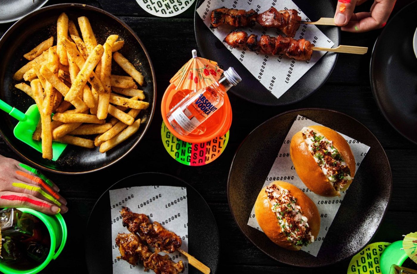 Cocktail buckets with Thai influences will be mixed by Longsong’s talented bartenders; choose between a Long Island Iced Tea or a Phuket Pash. As for the bar snacks, expect to see skewer bites such as chicken with sweet fish sauce and Char Siu pork. The menu also includes fish balls, hot dogs, spring rolls, fries with Tom Yum salt, and brioche rolls with prawn, sriracha mayo and pickles.