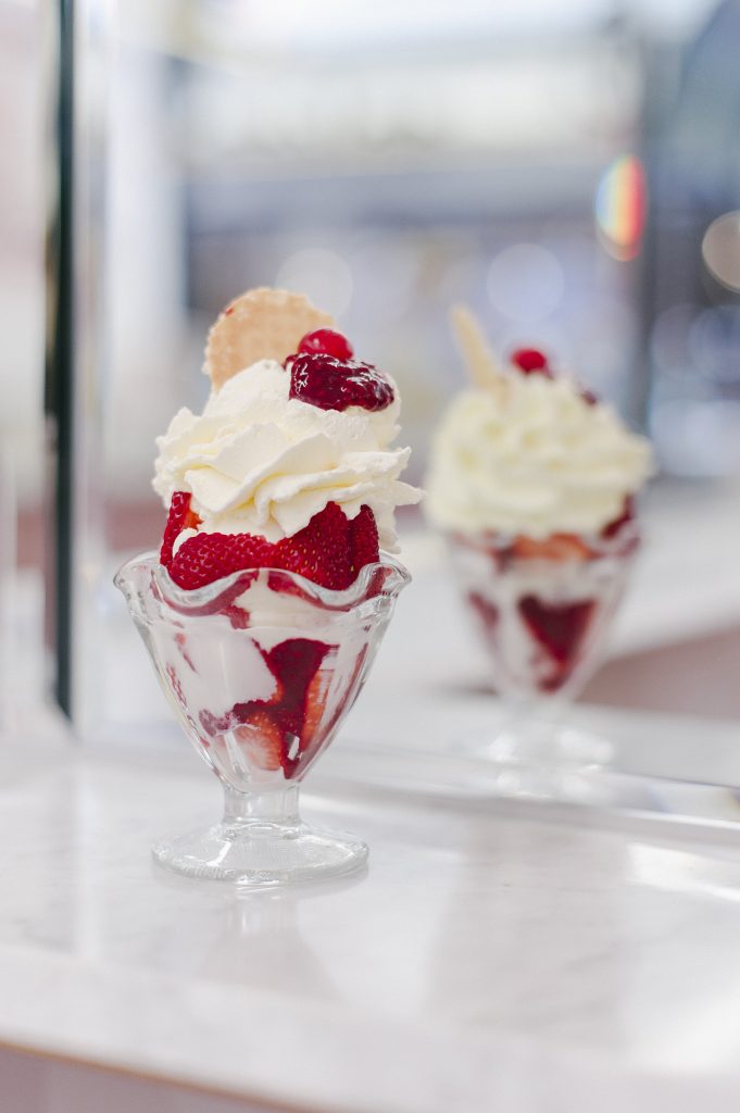 Ultra Fragola – Fior di latte gelato, fresh strawberries, whipped cream, strawberry sauce