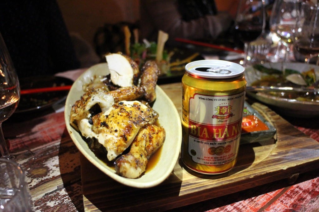 Speaking of fun, the dish that followed was one that involved chicken and a beer can! The Bia Can Chicken, a whole roasted chicken, with a bia hanoi sauce was brought out on a board with the beer can on the side, holding the sauce. This was a perfectly cooked chicken with savoury beer inspired sauce, a perfect match.