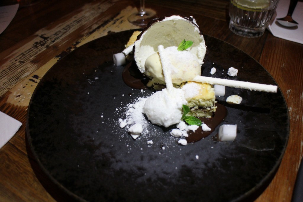 At this stage we had eaten enough for a small country but as they say, there is always room for dessert! And I’m really glad that we did. The Dame Blanche, a bounty chocolate meringue shell, coconut ice cream, coconut crenqux and molten chocolate was something that looked like it belonged in a Michelin star restaurant. It was an object of beauty, so carefully constructed and prepared, that it seemed wrong to eat it. But how could you not given the effort and design of the dish? I think I had died and gone to chocolate heaven – make sure you leave room for this spectacular dessert.