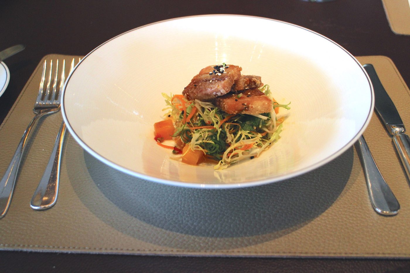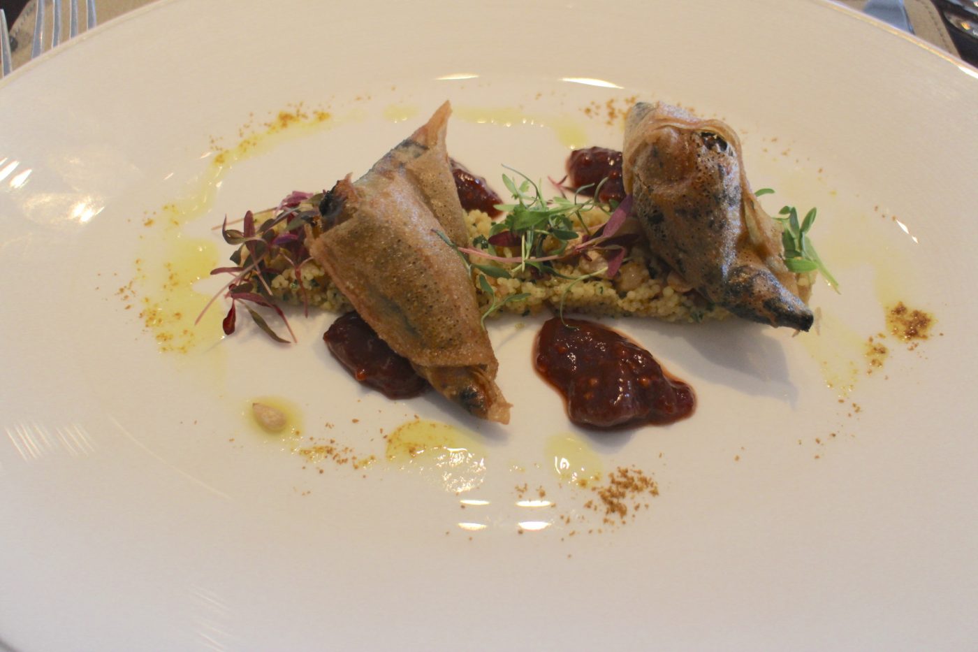 We started with Crispy Pork Belly Salad with Mango, Coriander and Sesame and the Spinach and Feta Pastilla, Ras El Hanout with Cous Cous and grape chutney. The former, a fresh and Asian inspired salad with pork belly roasted to crispy perfection but with soft, juicy flesh. The salad was fresh and crunchy with a subtle asian dressing that was sweet, sour and salty – the elements of a perfect dressing.