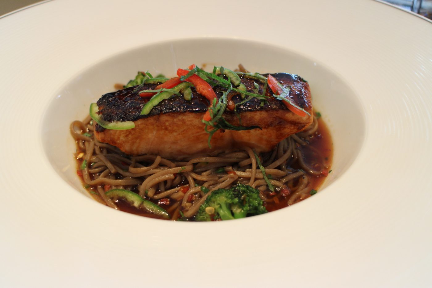 Mains were a delightful mix of land and sea. The Pan Seared King Salmon, Teriyaki with Spiced Soba Noodles and Broccoli was an amazing dish with the salmon cooked perfectly so that it was slightly crispy on the outside and the partially warmed flesh that flecked off as you cut into it. The sweetness of the teriyaki sauce was enhanced with the spiciness of the soba noodles. A magnificent main.
