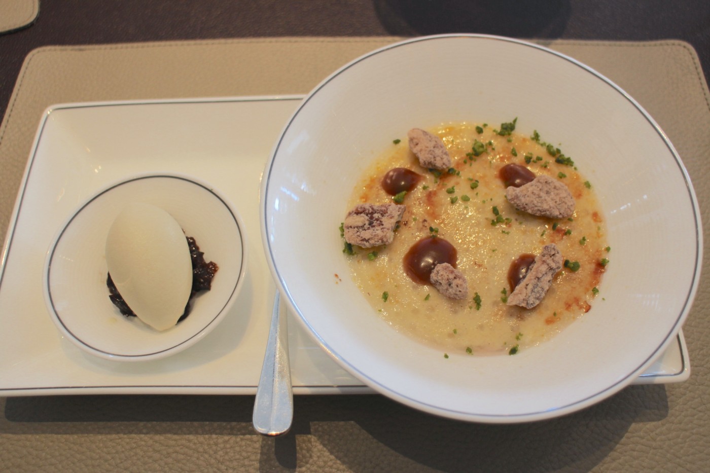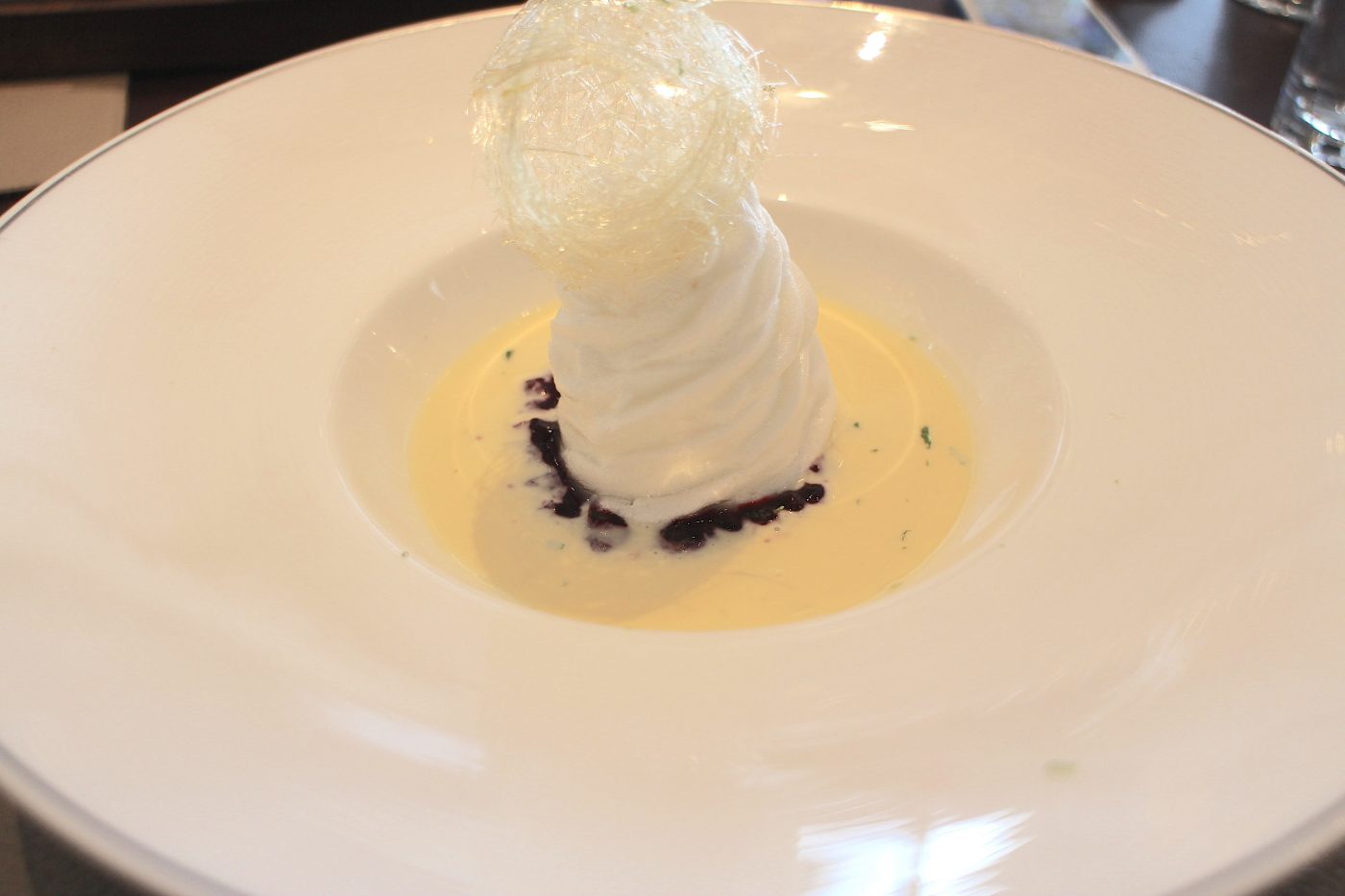 I have to say after the first two dishes, I probably started to question my ability to eat dessert. But I guess when you’ve come this far on your gastronomic journey it is wrong to stop. And I’m glad we didn’t because the desserts were just beautiful. Floating Island, Elderflower Anglaise with Cassis and Red currants was a vision of white! The delicate Elderflower anglaise was a floating tower of sweetness on a bed of Cassis and Red currants all topped with a sugary net. It wasn’t too sweet but it was creamy and indulgent.
