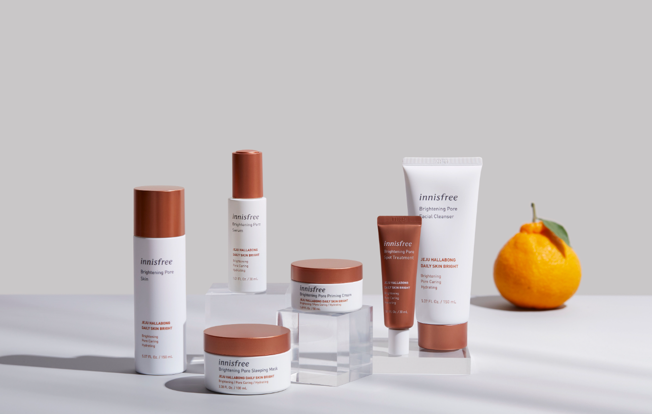 innisfree’s Brightening Pore line is a brightening solution formulated with Jeju Hallabong peel extract and three vitamin derivatives (B3, C, and B5) to address visible blemishes, hidden dark spots and pores. The line consists of six products tailored for different skincare steps, including Brightening Pore Skin, Serum, Spot Treatment, Priming Cream, Sleeping Mask and Facial Cleanser, with each product boasting a non-sticky and refreshing finish.