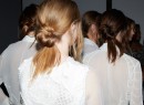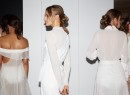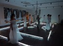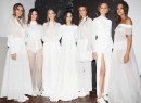 Guests were treated to a captivating performance by a violinist who stood centre stage as the models showcased Kaliver’s flowing white creations, styled by KMS California. The warehouse space was enhanced with dim lighting and twig creations on the floor by well-known florist, My Violet.