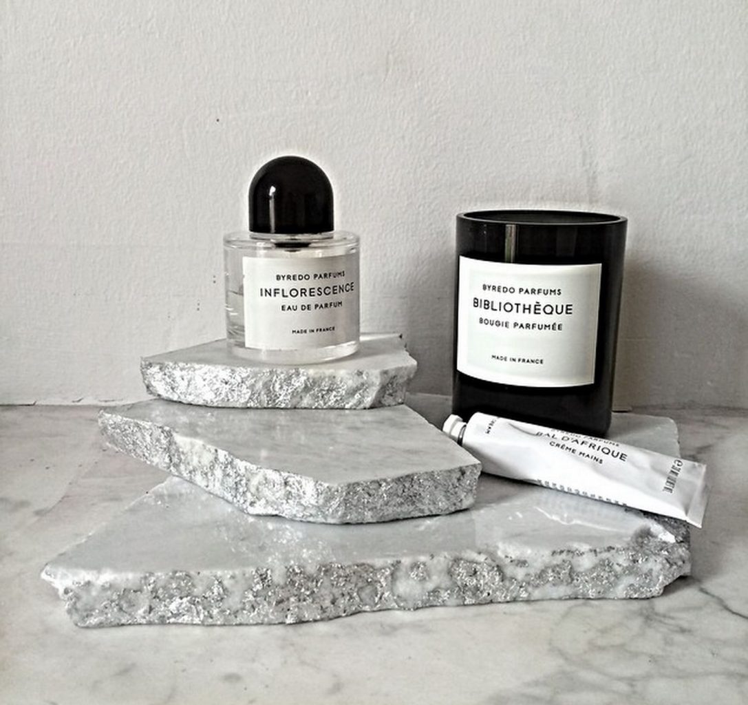 Byredo Fragranced Candle in Fleur Fantome and Cotton Poplin (70gm $44) and Bibliotheque (200gm $95). Available from Mecca SHOP NOW> Cosmetica.