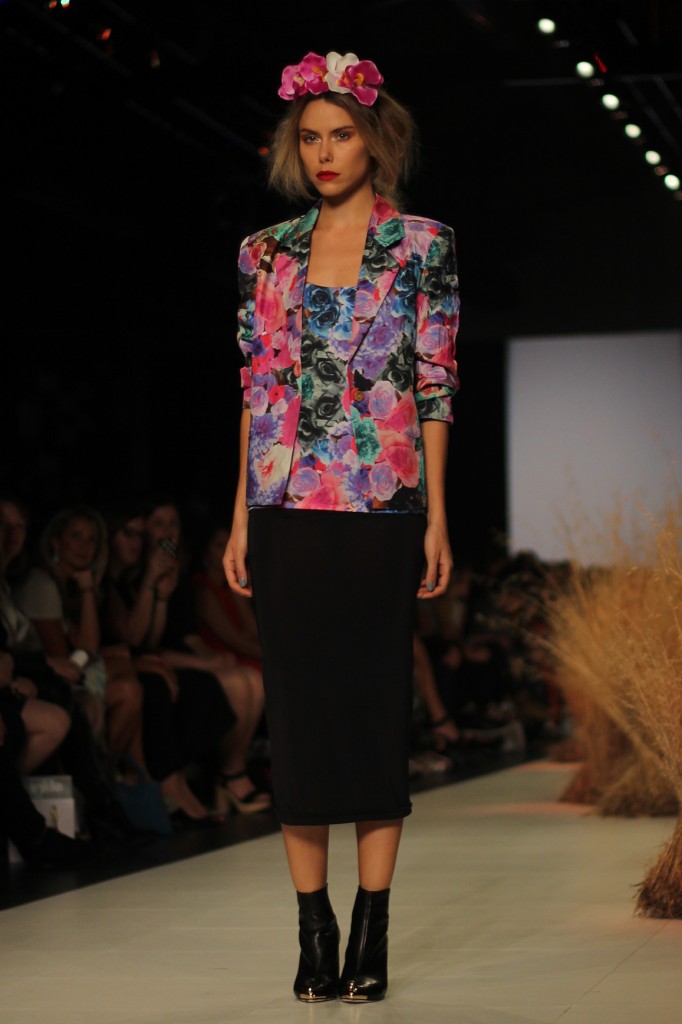 Limedrop’s beautiful silk prints featured brilliantly, as the loose-fitted sleeveless shirt dresses and tops floated down the runway printed in clouds, juxtaposed against the black rose print that strutted down. Colour also splashed down the catwalk with a loud bang, particularly the printed quilted jacket which was a Couturing favourite.