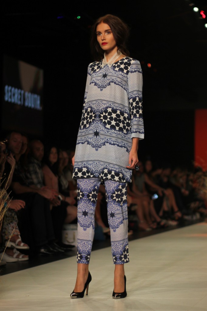 An exciting collection was Secret South, whose Middle Eastern-like prints paired with clean-cut silhouettes stole the show. A variety of prints featured amongst the travelling collection, styled appropriately with chunky jewellery, as well as simple one-toned pieces let the sartorial aspect shine through; the black jumpsuit is a must have for this season.