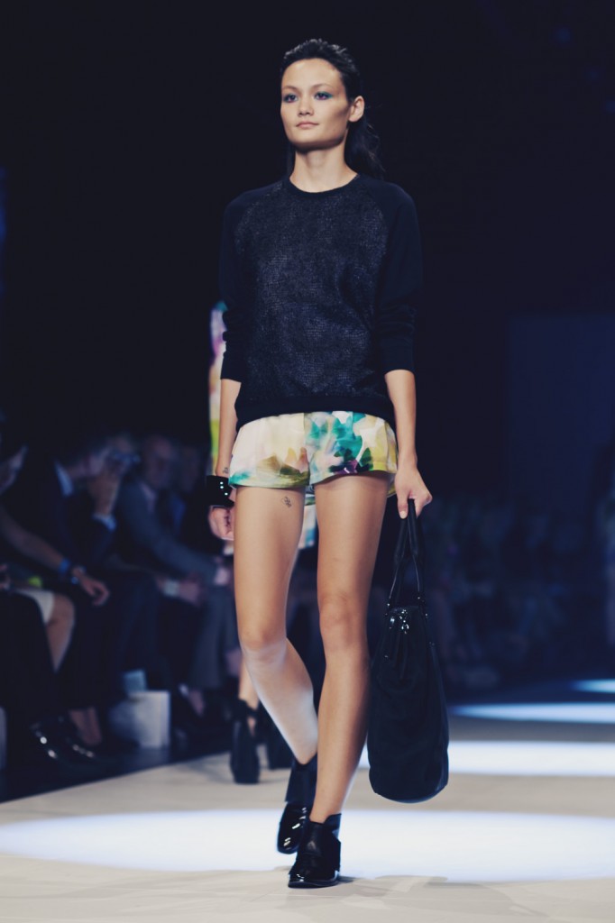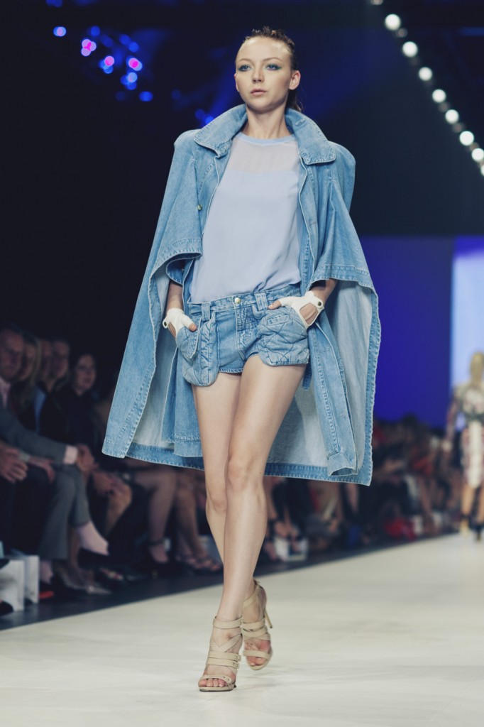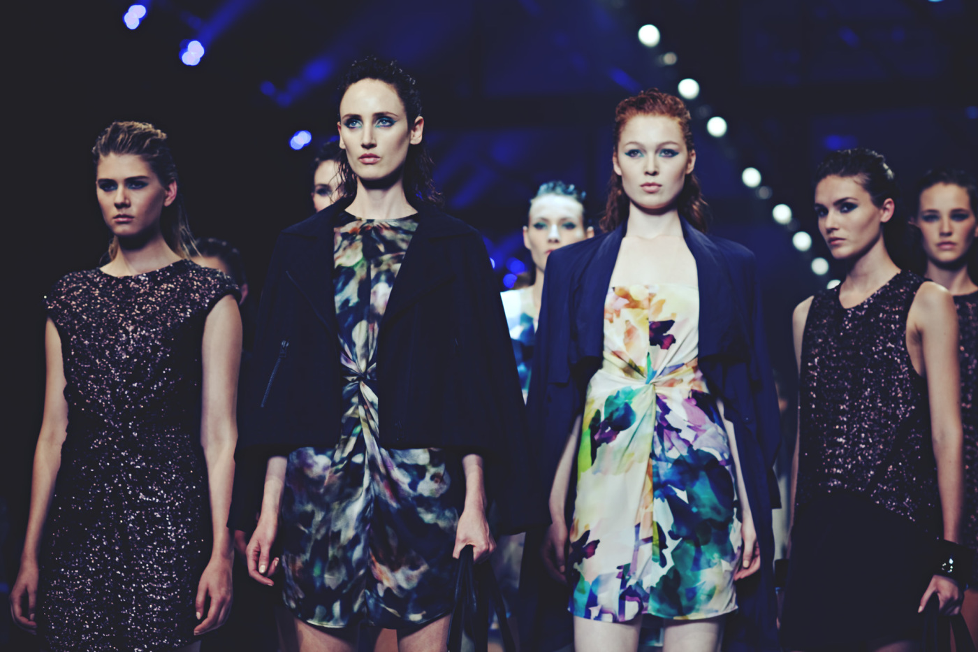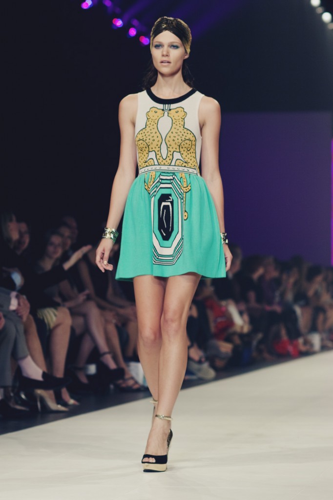 Turbans graced the models as they walked for Alice McCall in a palette of fresh aquamarines and exciting corals. The collection screams decadence- think a fusion of orientalism and glamour. We’re presented with the bohemian aesthetic we’ve come to associate with McCall, however slightly more refined and current.