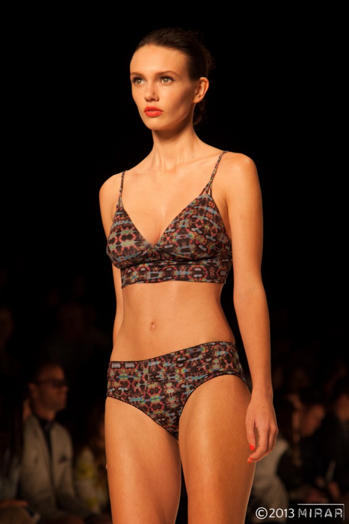 The inspiration fo this collection was designer Kirstin Sikiotis’started with a Rodqiguez song called Silver Magic Ships, singer MIAs style and photos by Bill Henson and Harper Smith. The collection was a myriad of patterns, graphics, geometric design with a kaleidoscope of digital floral. Vivid animal prints and metallics were highlights of the collection.