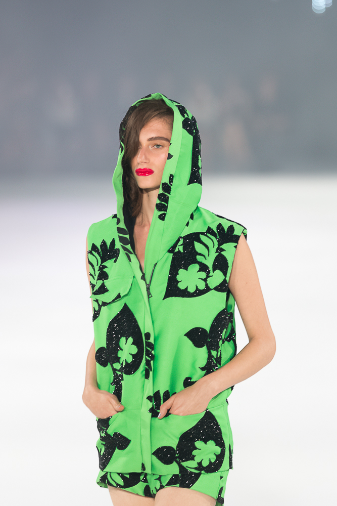 When the show started, the club like atmosphere was transformed into a sea of white light as models stormed the runway in a sea of bold colours and textures.