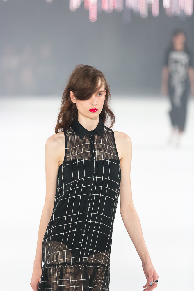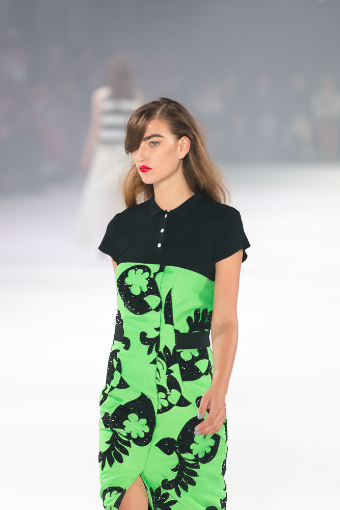 While hemlines were short, looks were kept conservative from the midriff up. Collars gave the collection a modern preppy feel, while still maintaining that cool Manning Cartell vibe.