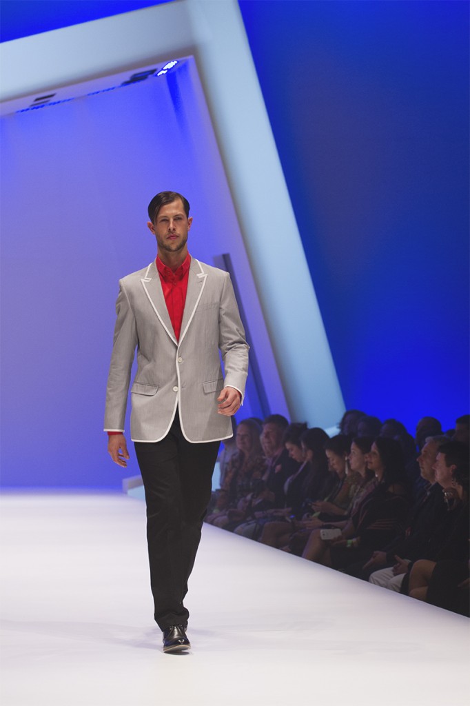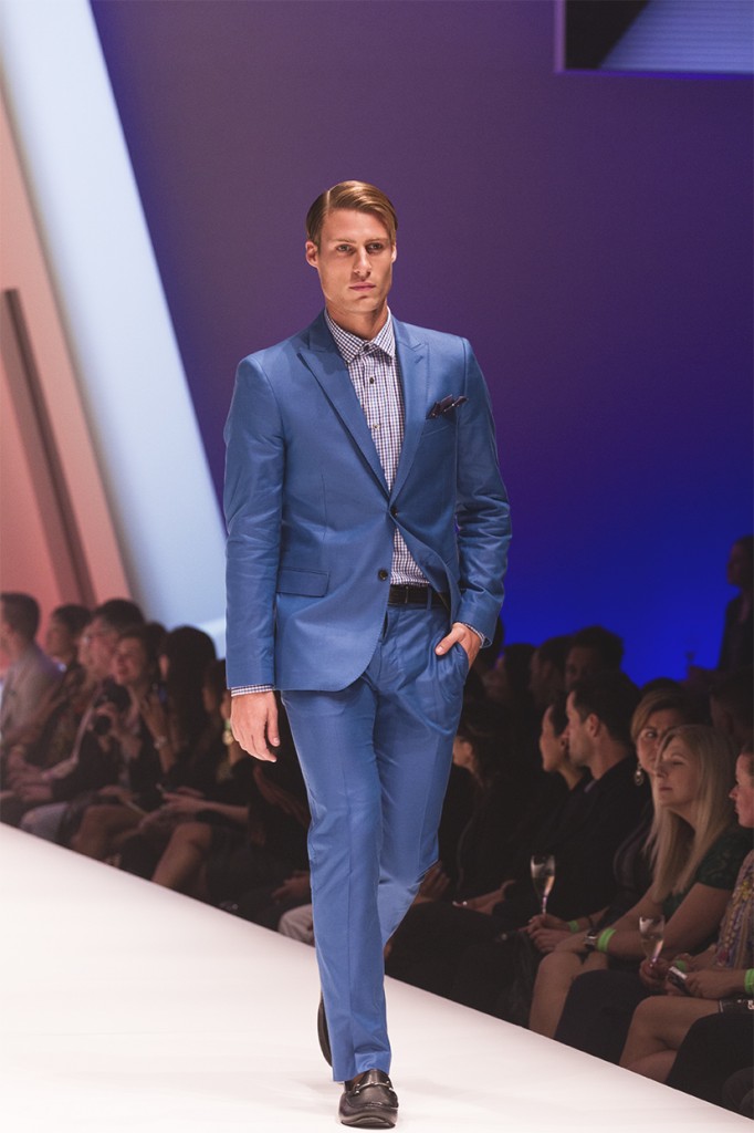 If it hadn’t been heavily suggested by Arthur Galan AG earlier in the show, it was cemented by Calibre; colour on men is back in a big way. Not a black suit in sight, Calibre presented us with splashes of red teamed back with monochromes before moving into more versatile separates in tan, stone and dark mocha hues. A selection of navy pieces showcased the label’s versatility, primarily their ability to dress a man for any occasion.