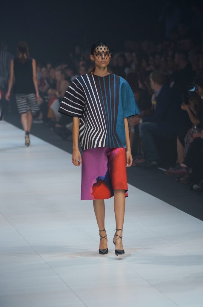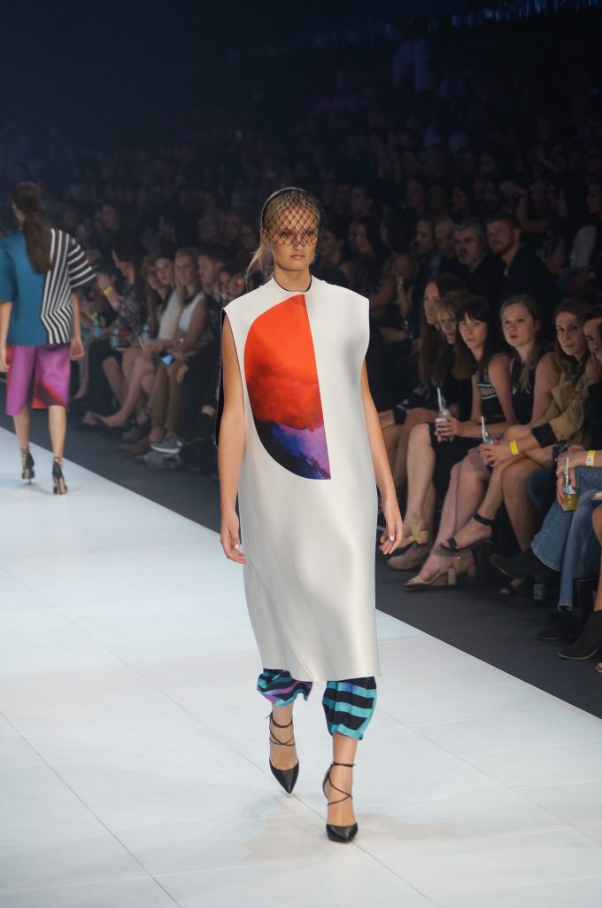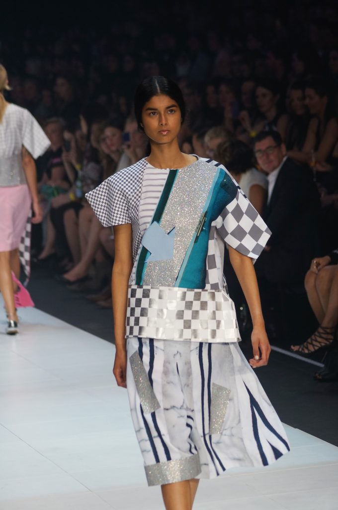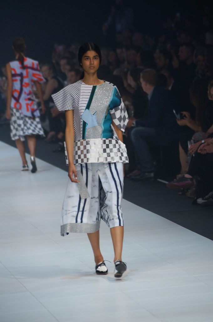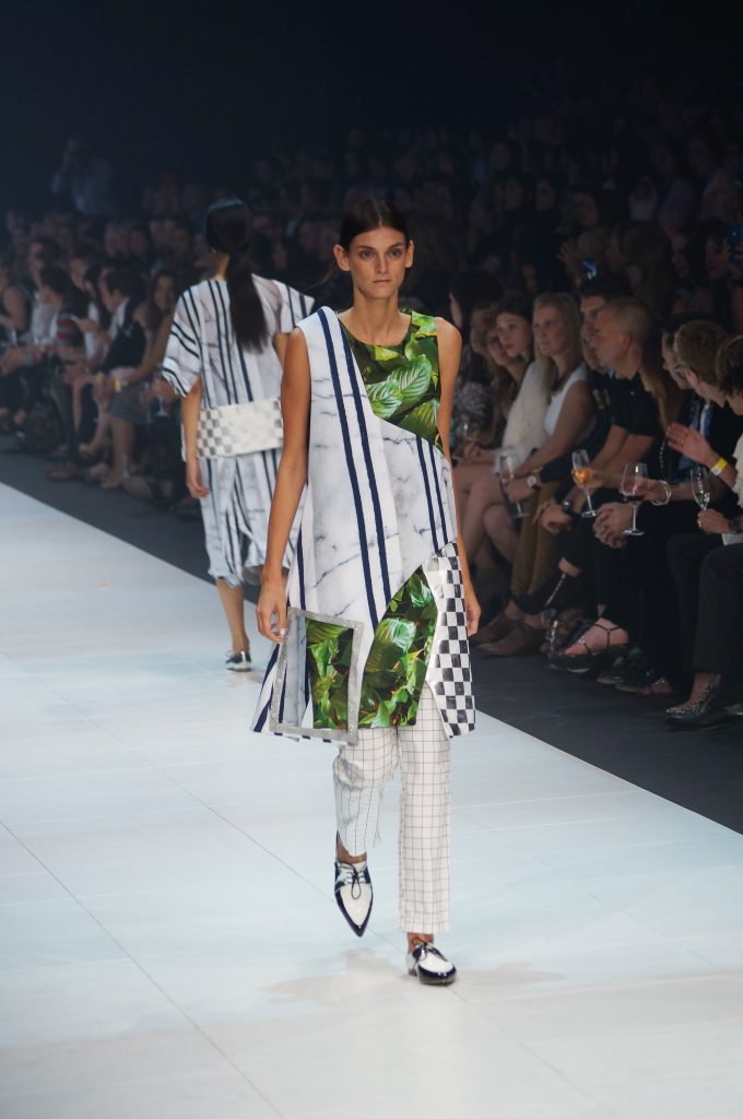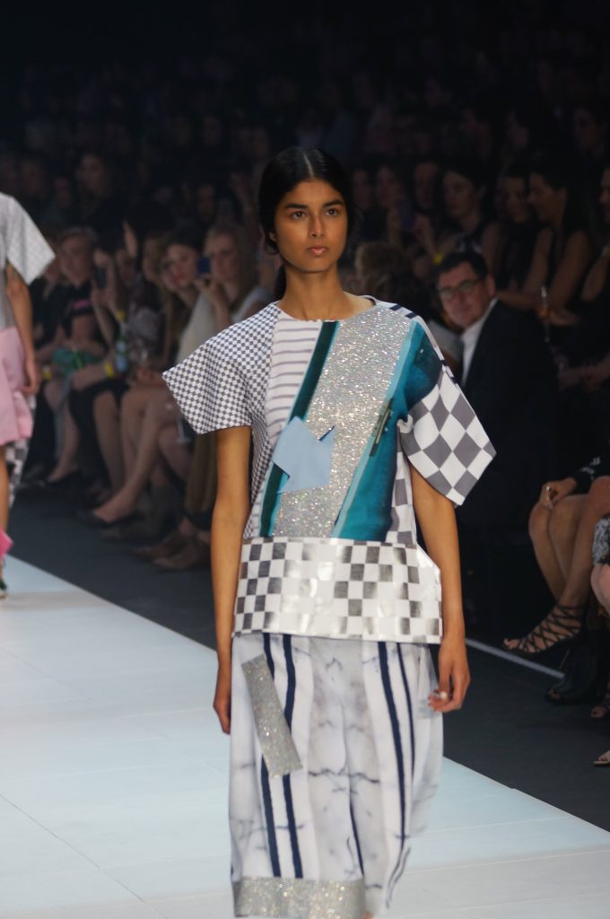 Opening the show was Monique Duggan and her collection OPTIC. Digitally altered floral prints were matched against stripes and geographic shapes, all with a little bit of volume. Inspired by optical illusions and modern art, the collection felt bold, engaging, and very Melbourne laneway ready.