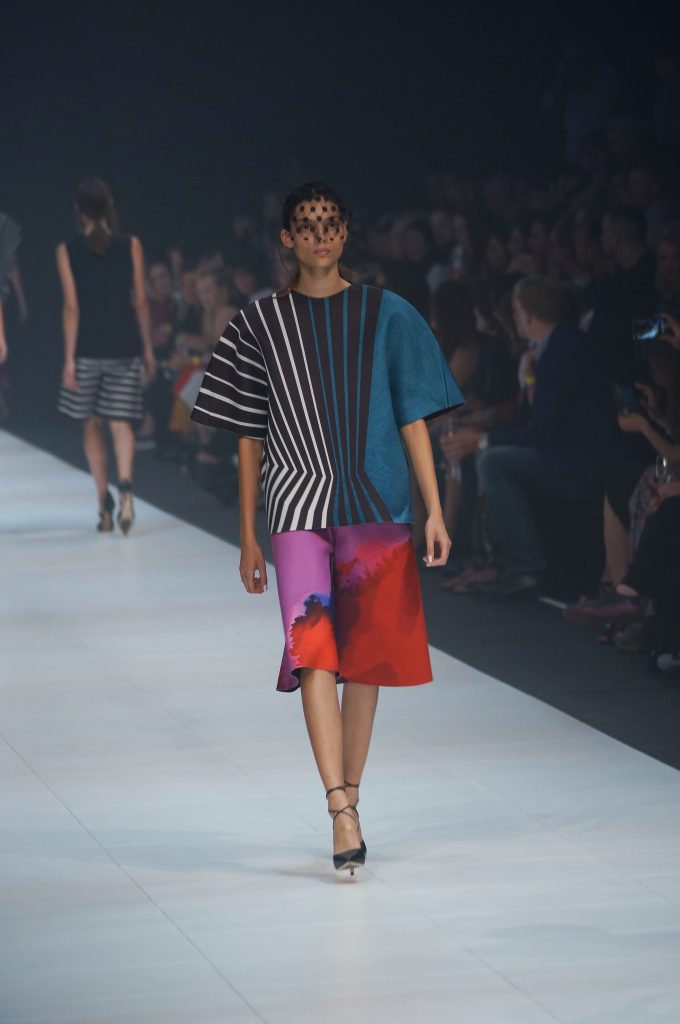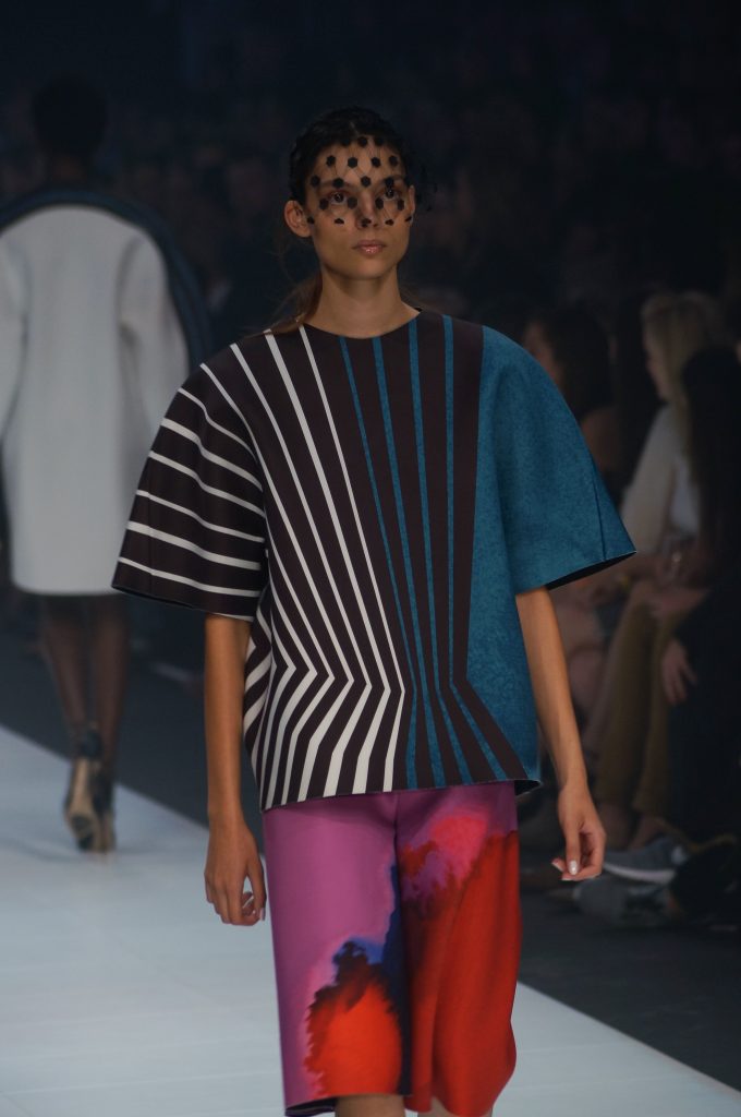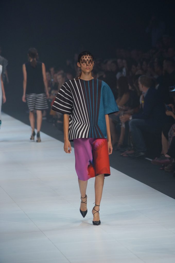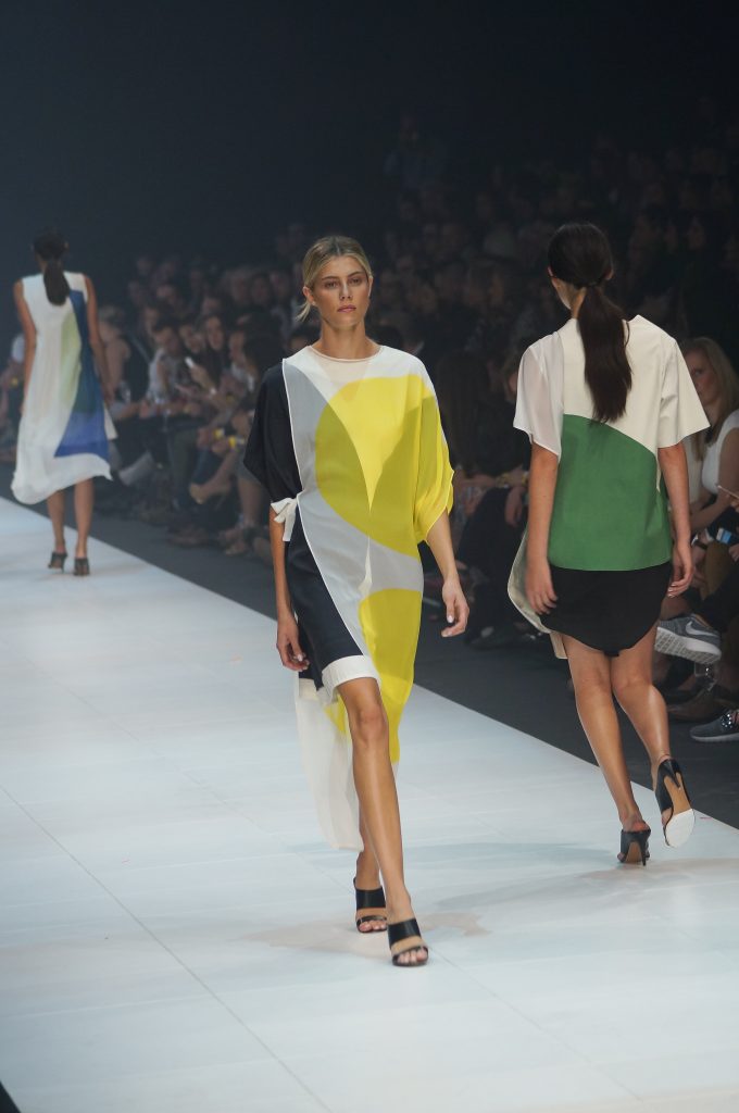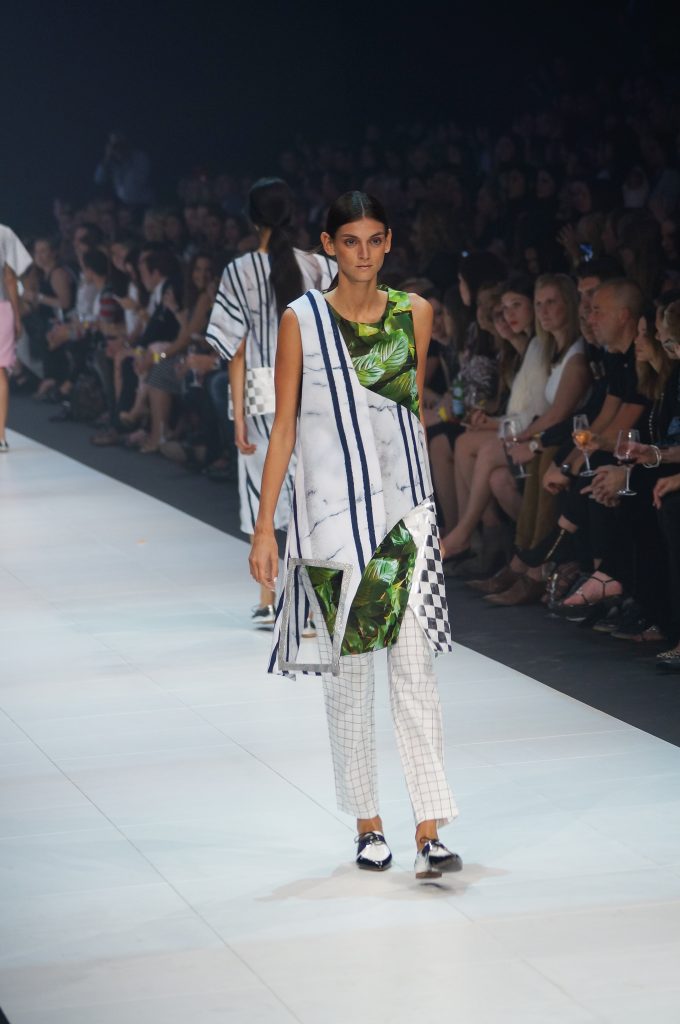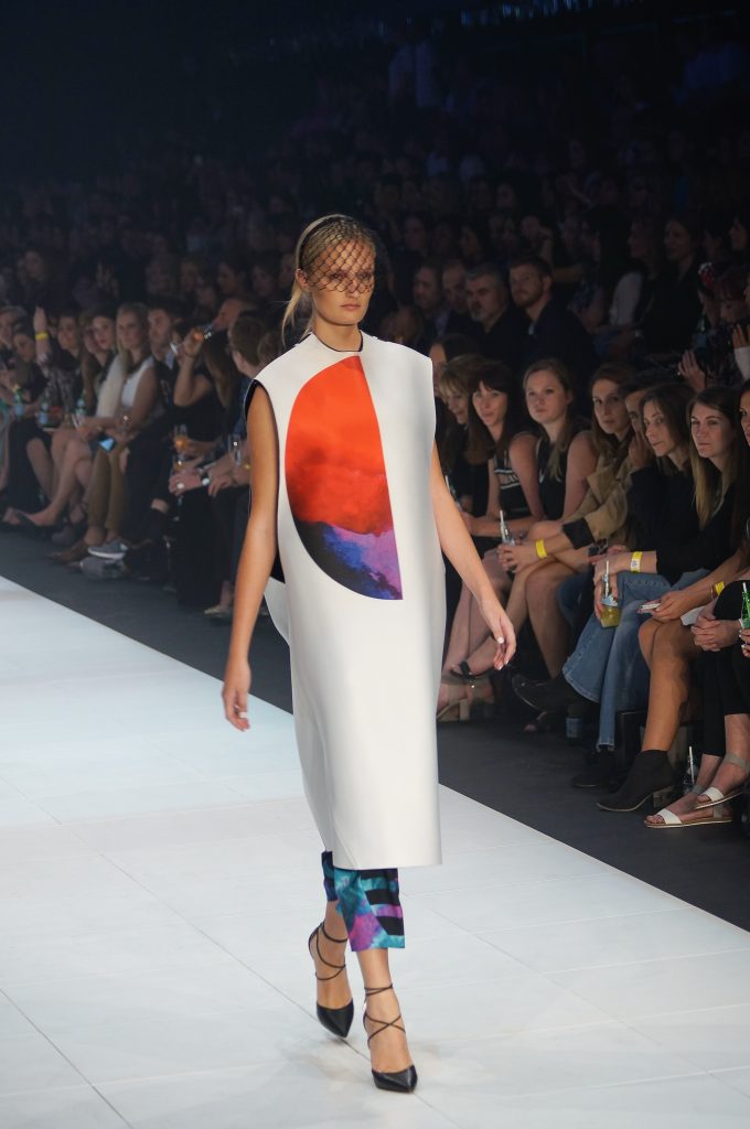 Opening the show was Monique Duggan and her collection OPTIC. Digitally altered floral prints were matched against stripes and geographic shapes, all with a little bit of volume. Inspired by optical illusions and modern art, the collection felt bold, engaging, and very Melbourne laneway ready.
