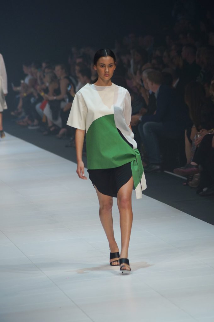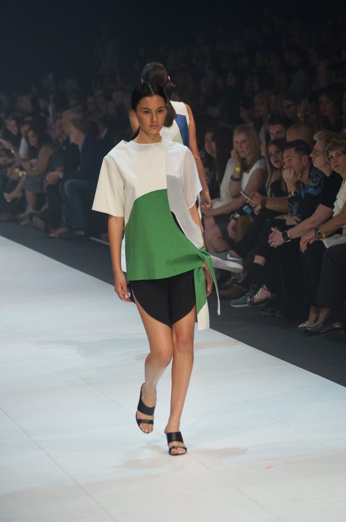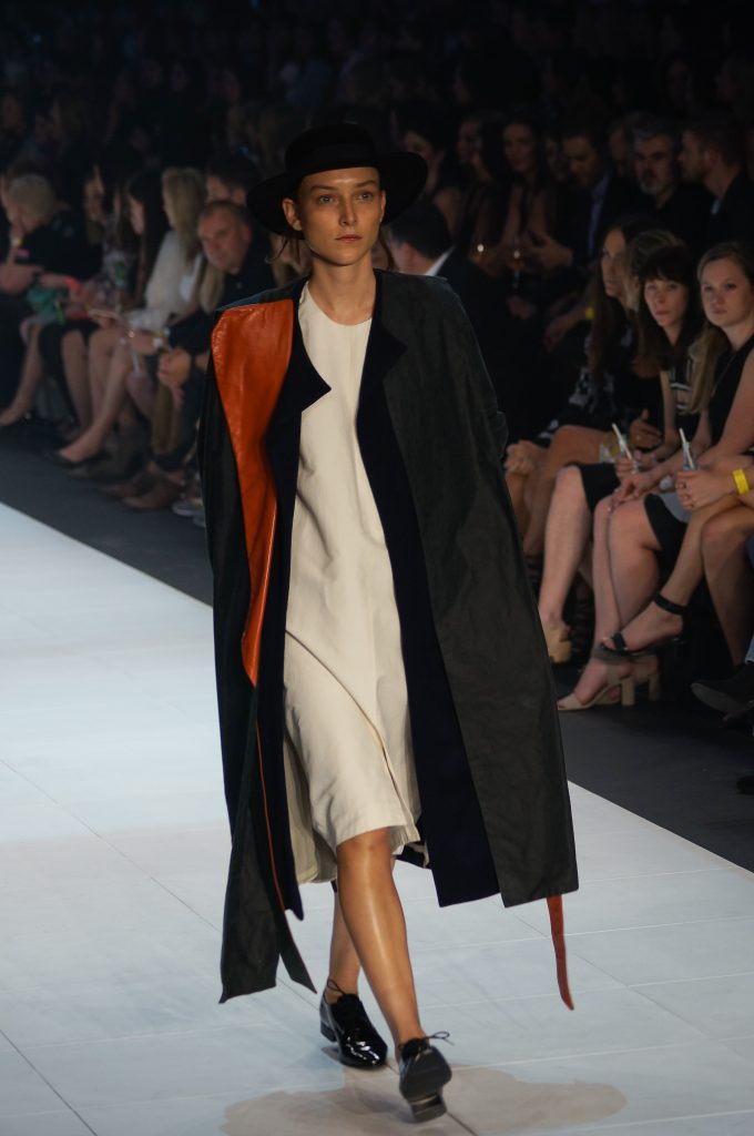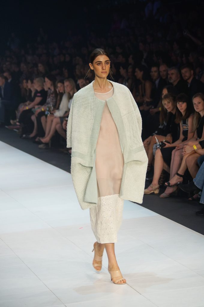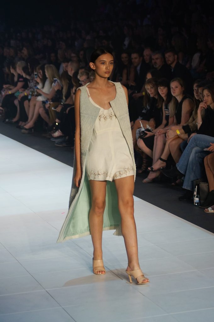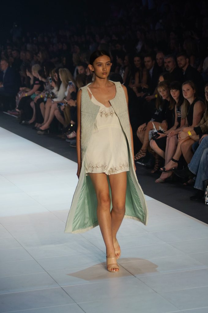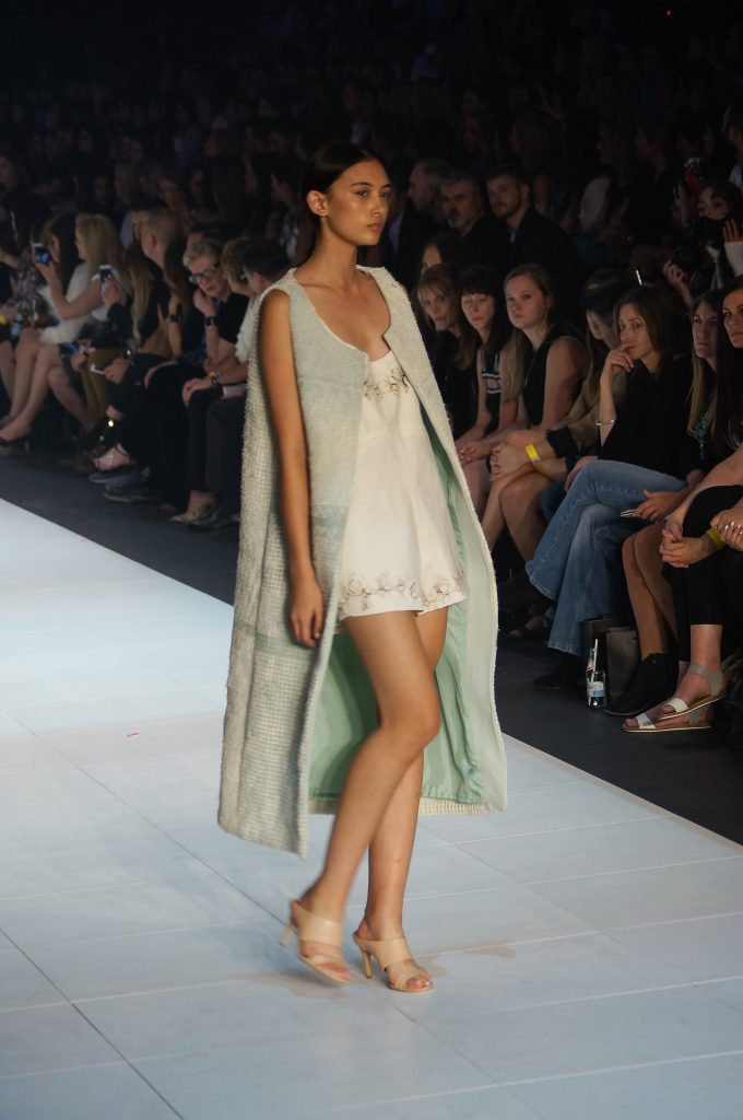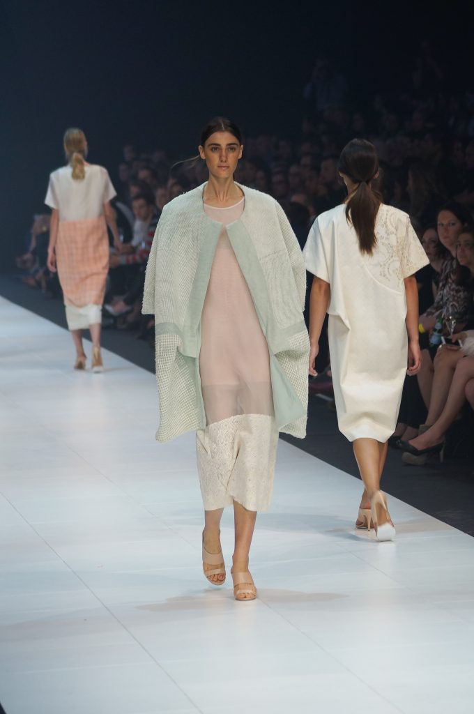 Felicity Gleeson was flowing and feminine, with mint green and neutral colours forming the base of her collection. Loose shift dresses and capes made up the basis of the silhouettes, making this collection one for the woman who wants fashion forward pieces, but with usability.