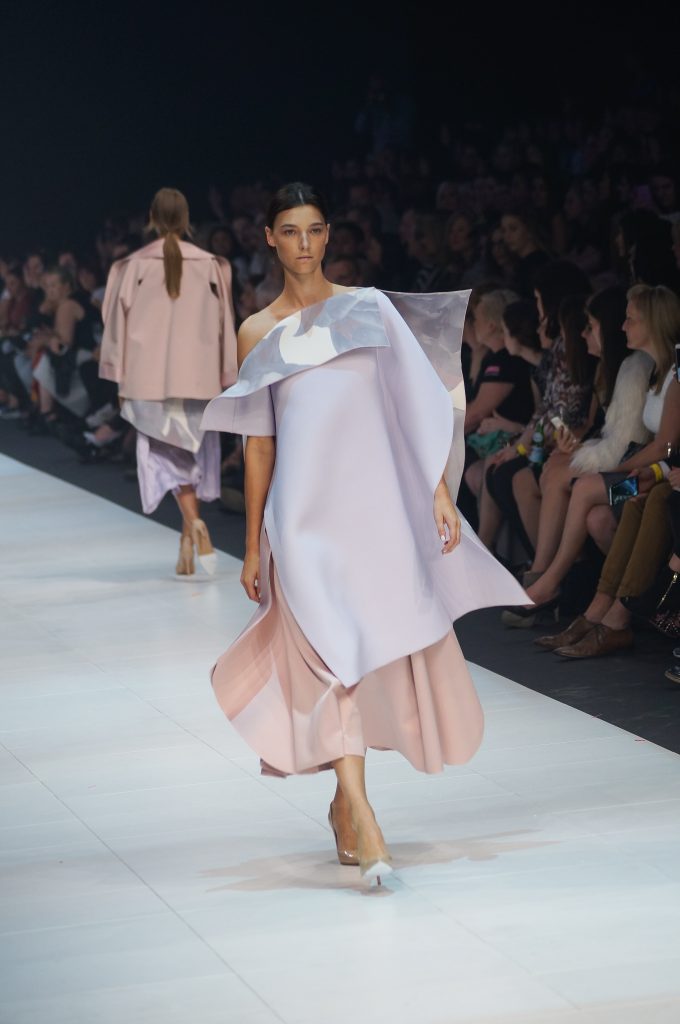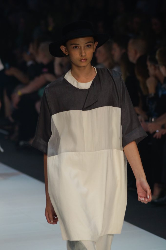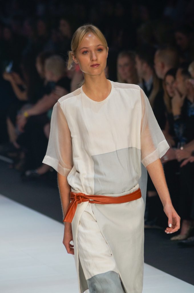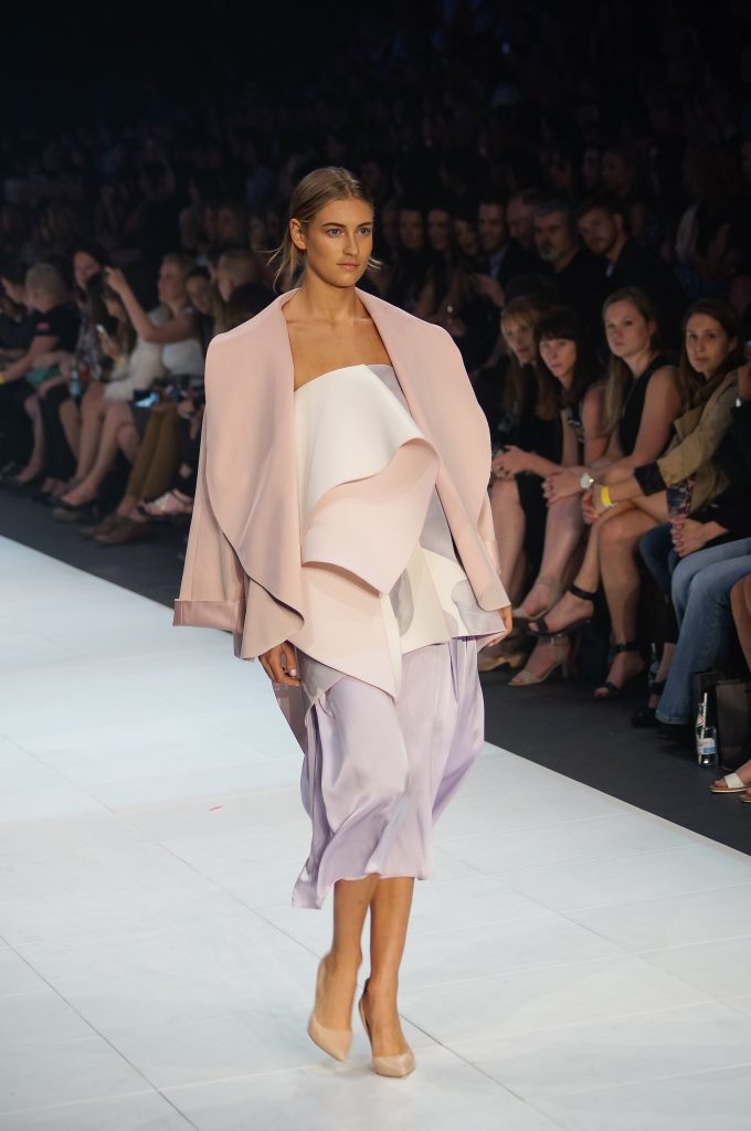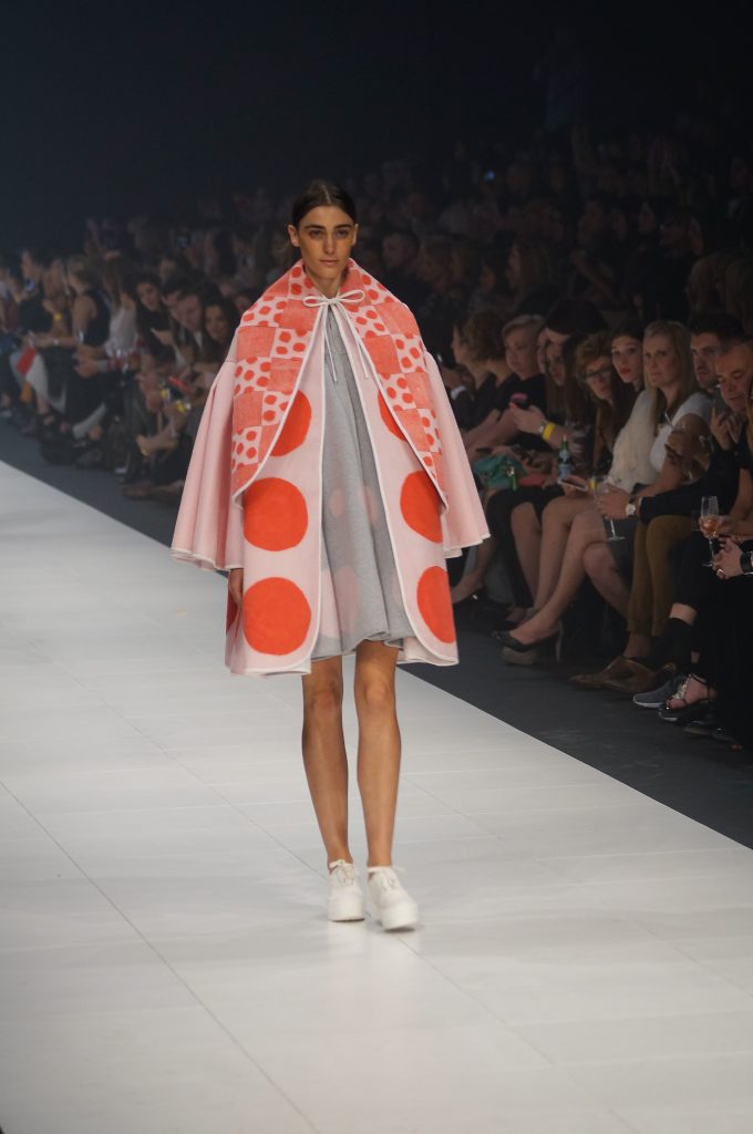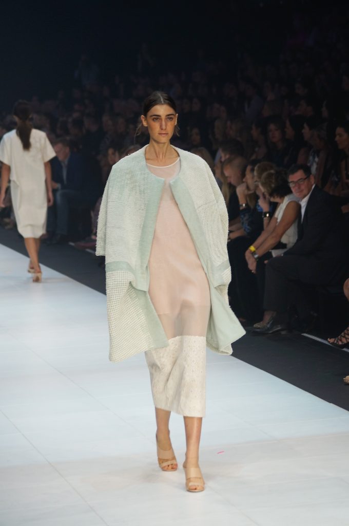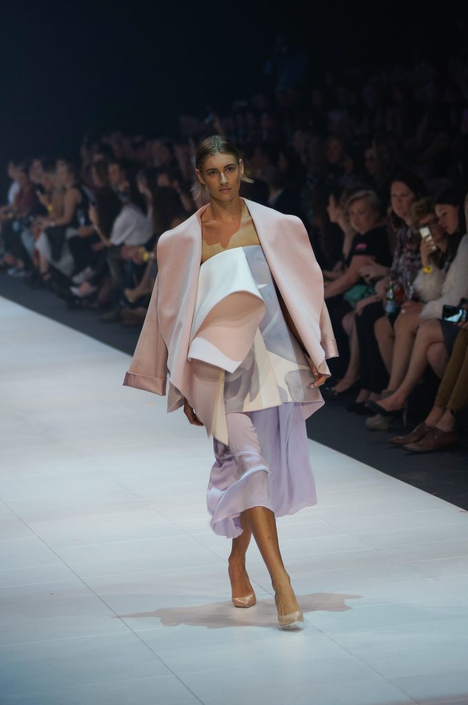Felicity Gleeson was flowing and feminine, with mint green and neutral colours forming the base of her collection. Loose shift dresses and capes made up the basis of the silhouettes, making this collection one for the woman who wants fashion forward pieces, but with usability.