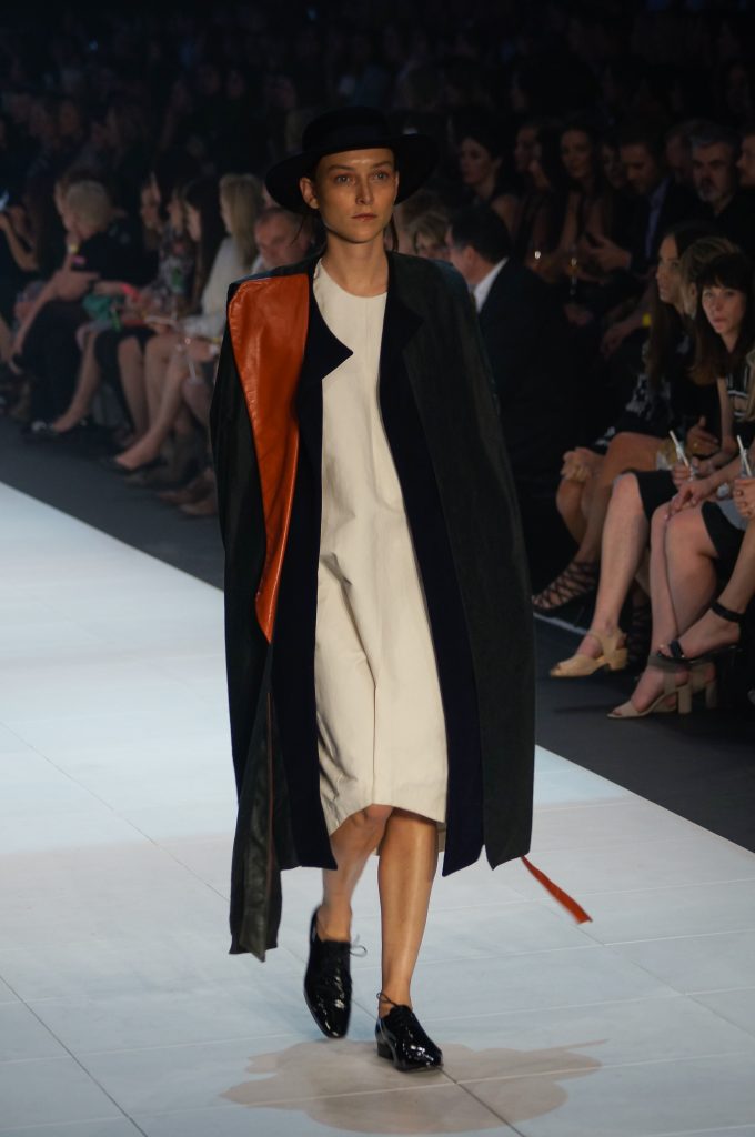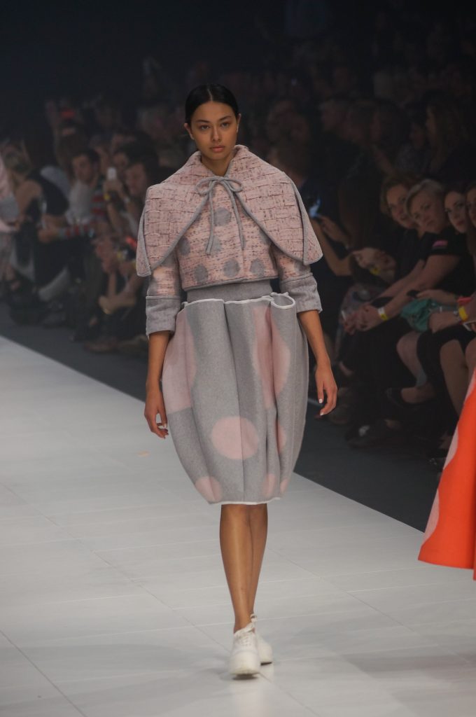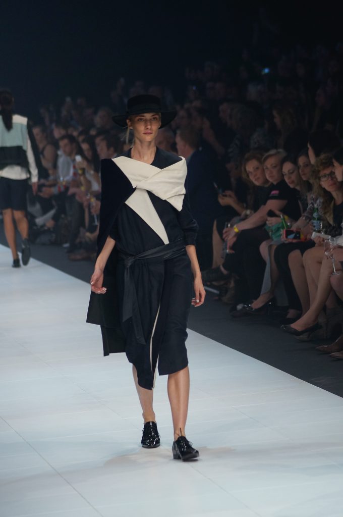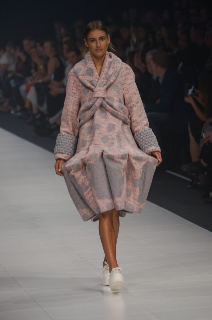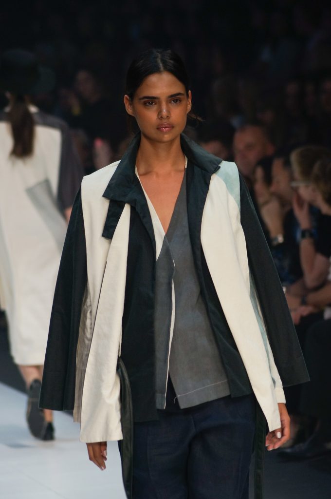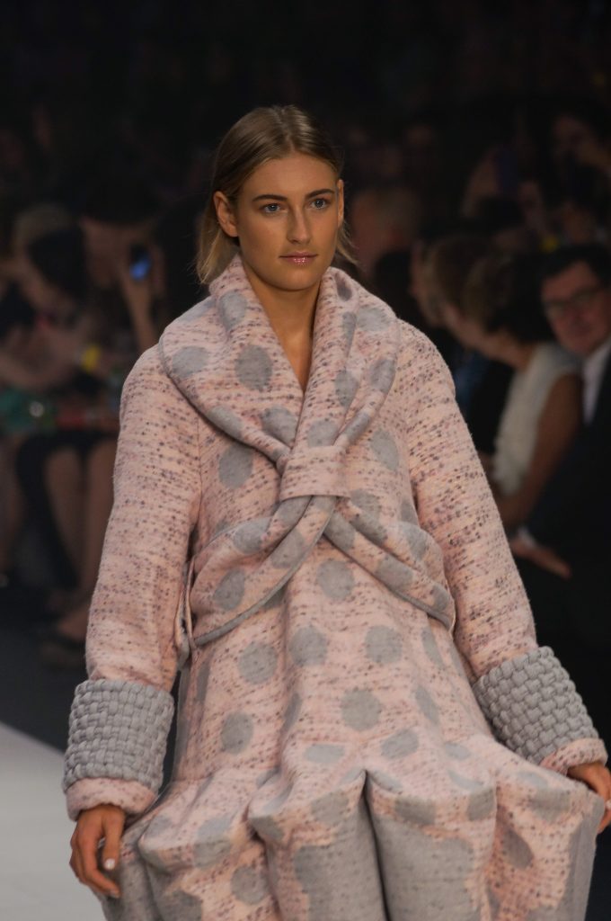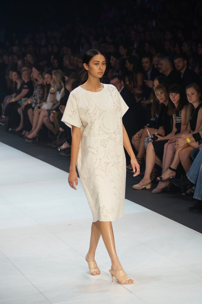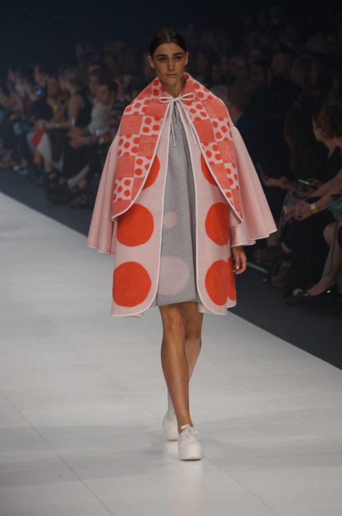 Felicity Gleeson was flowing and feminine, with mint green and neutral colours forming the base of her collection. Loose shift dresses and capes made up the basis of the silhouettes, making this collection one for the woman who wants fashion forward pieces, but with usability.