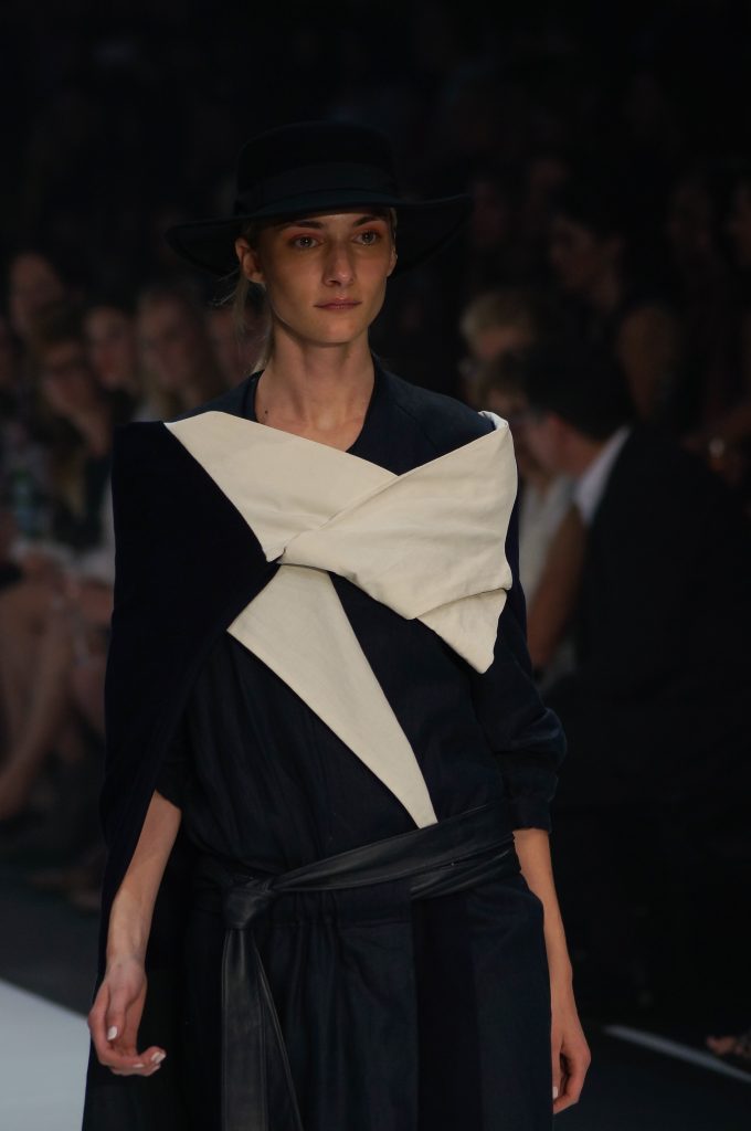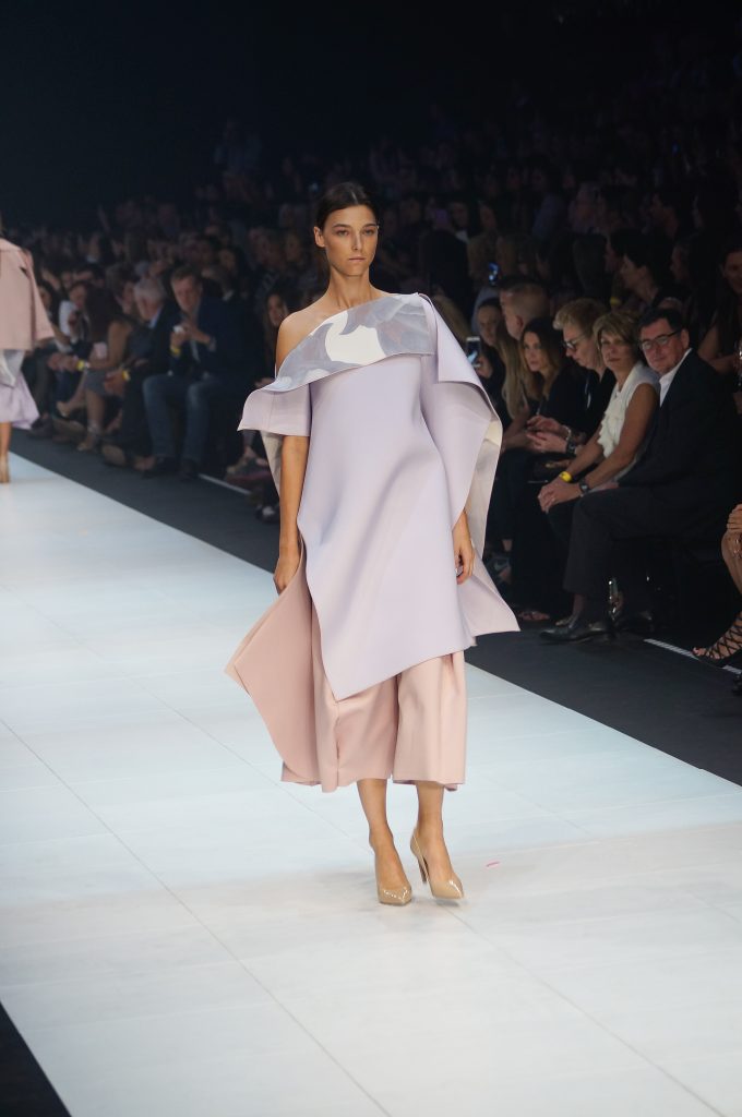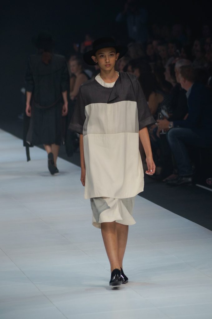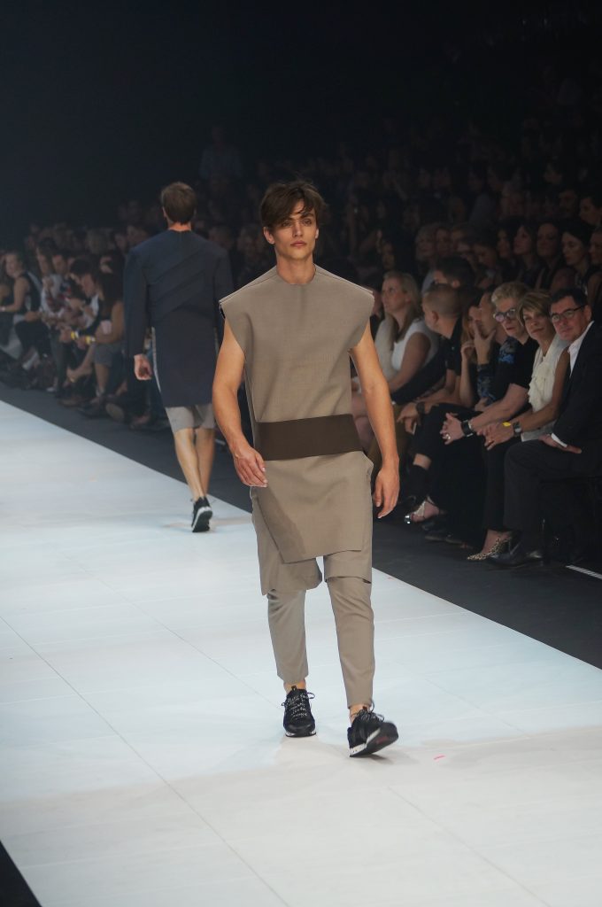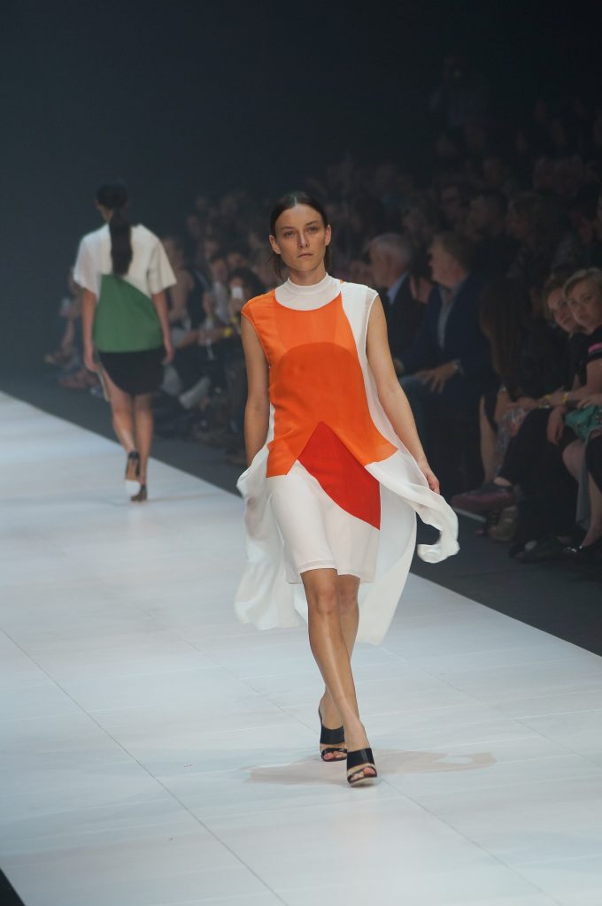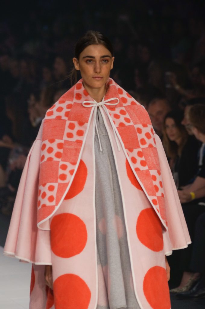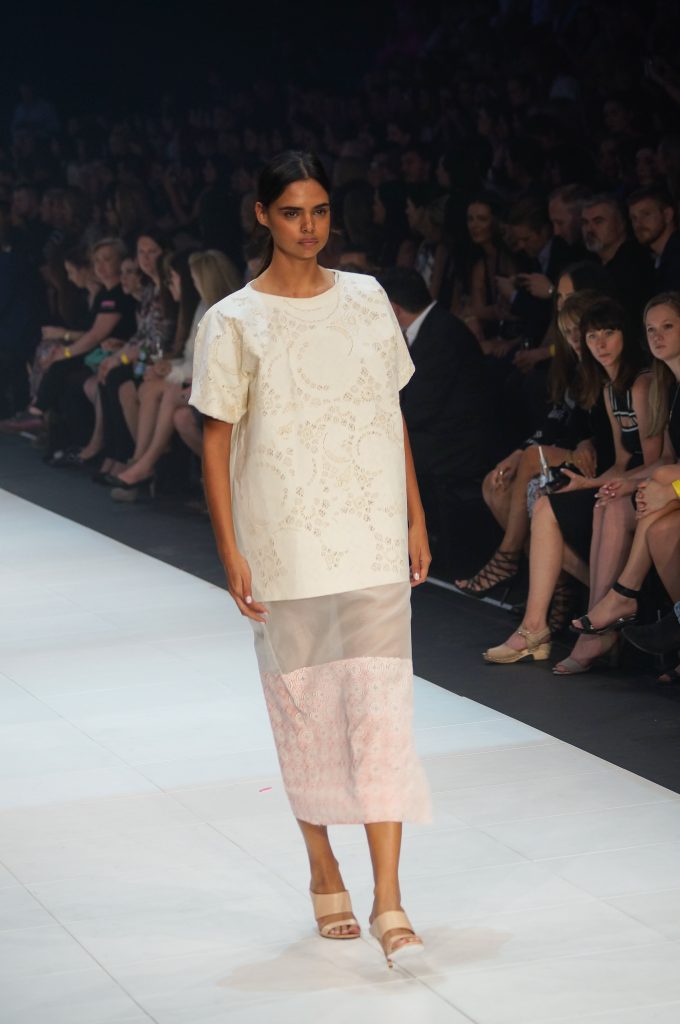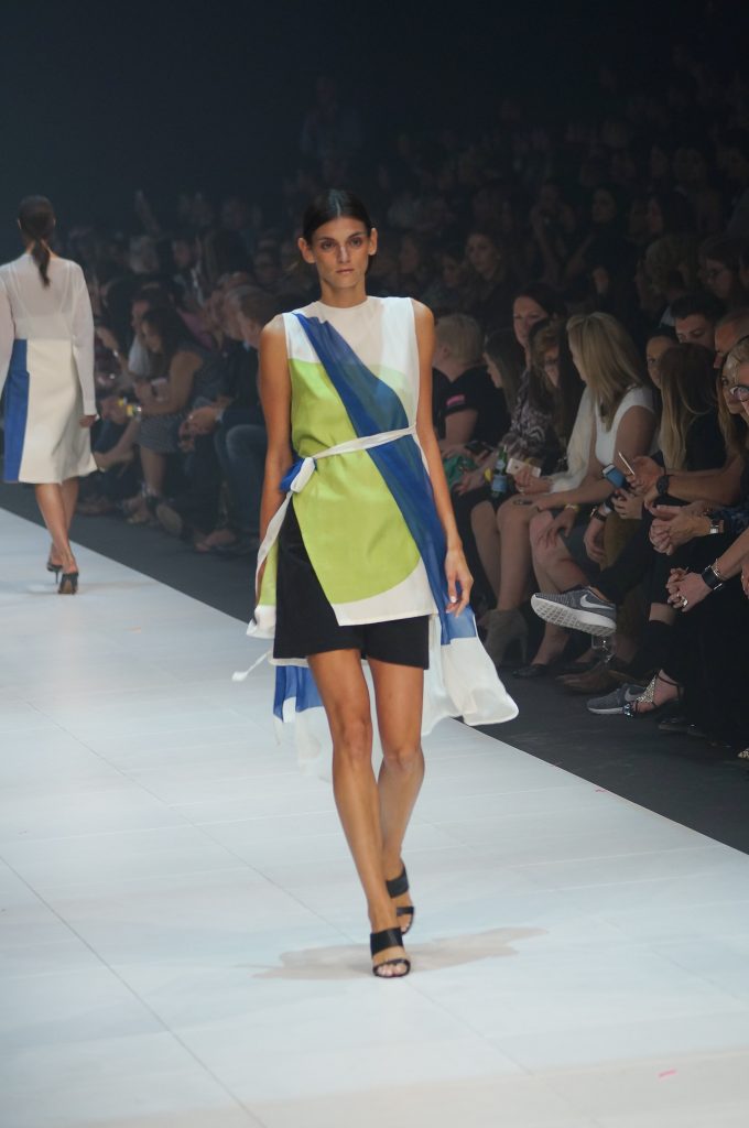 Felicity Gleeson was flowing and feminine, with mint green and neutral colours forming the base of her collection. Loose shift dresses and capes made up the basis of the silhouettes, making this collection one for the woman who wants fashion forward pieces, but with usability.