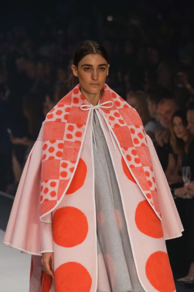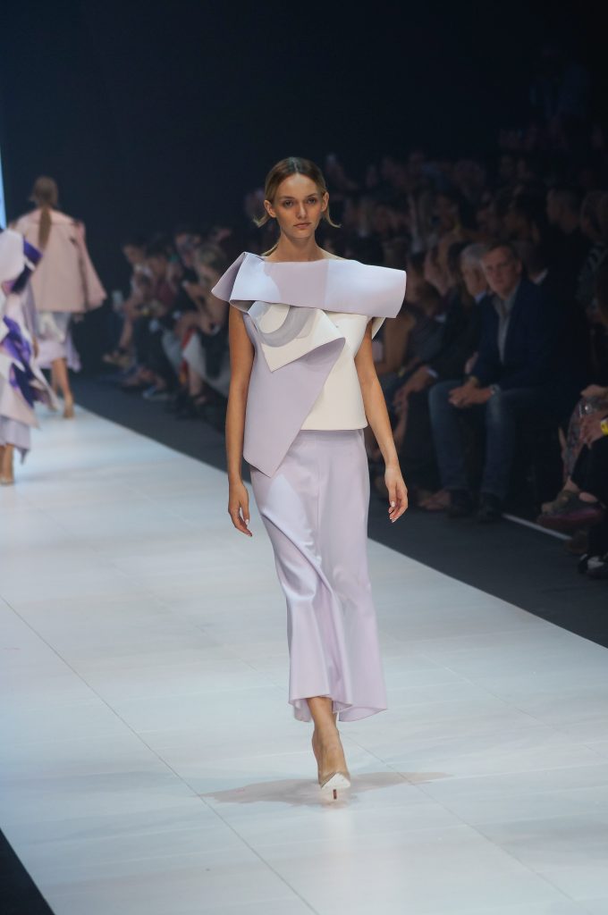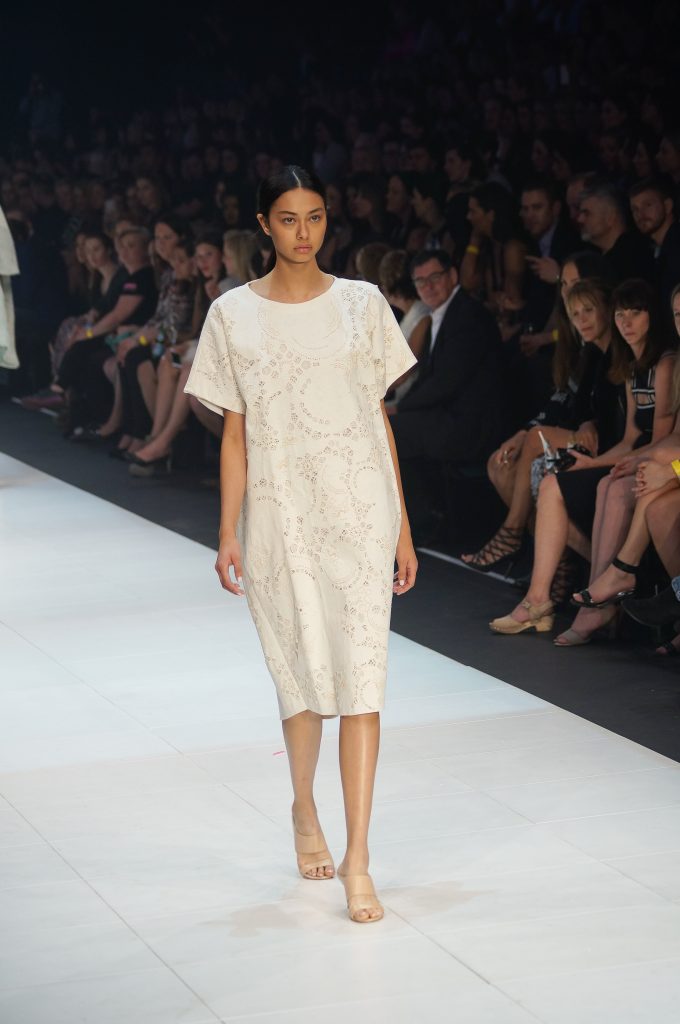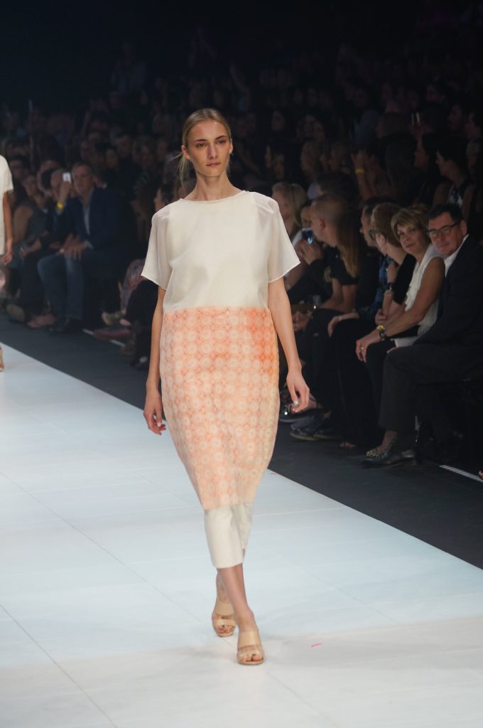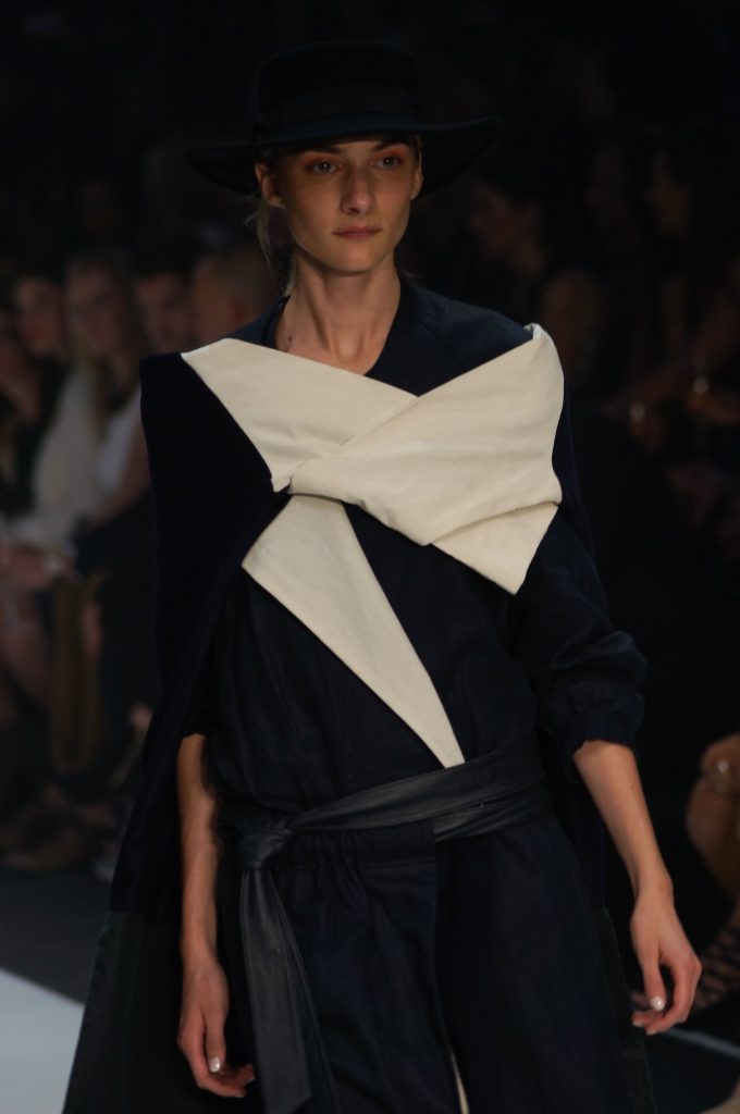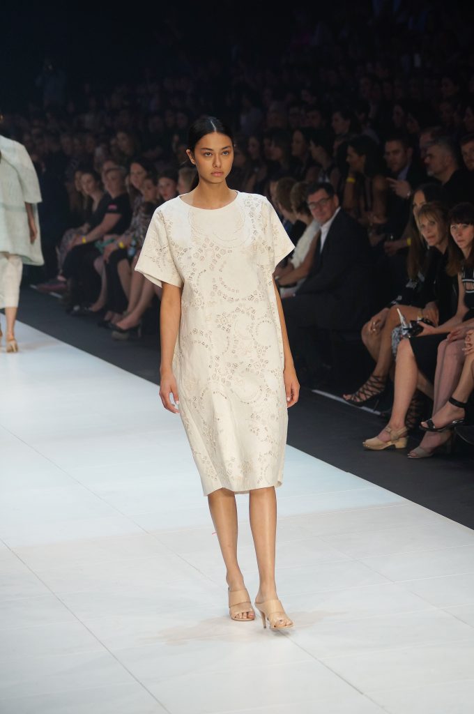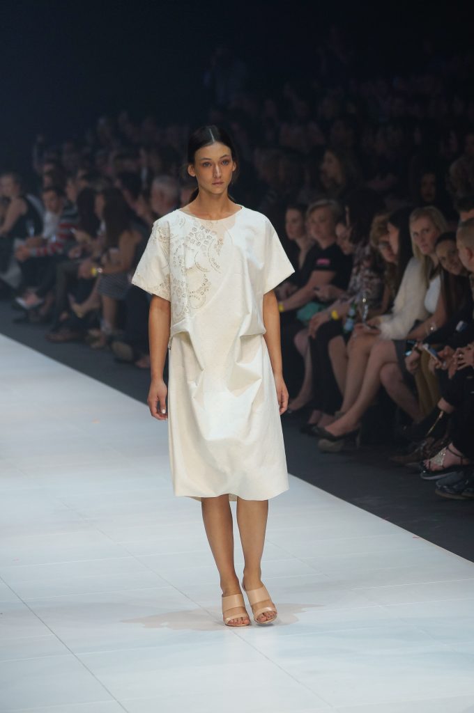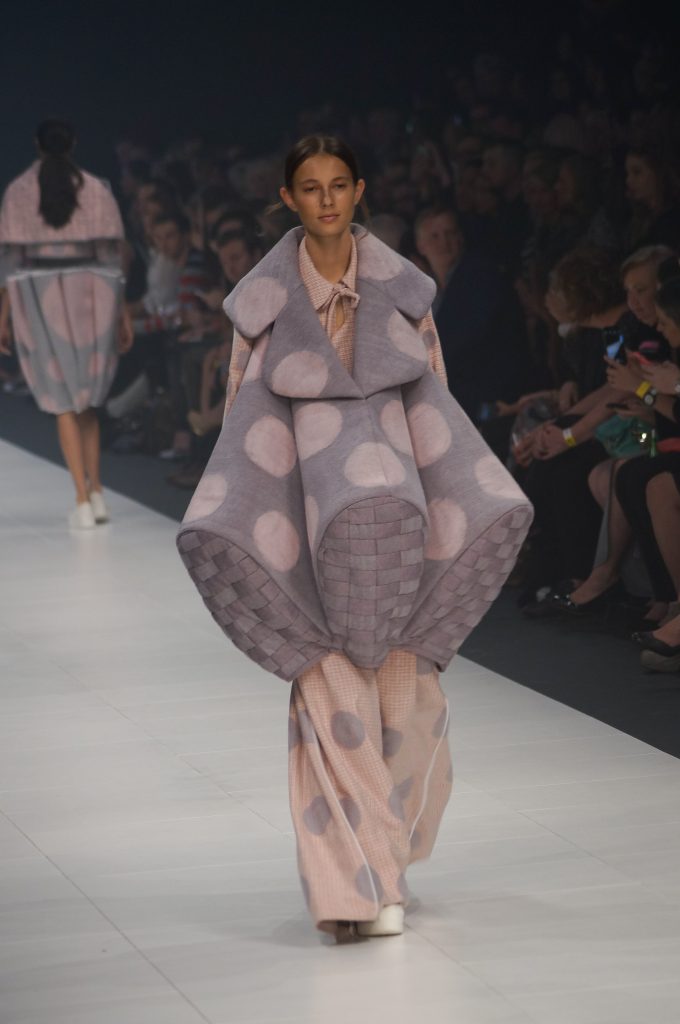 Felicity Gleeson was flowing and feminine, with mint green and neutral colours forming the base of her collection. Loose shift dresses and capes made up the basis of the silhouettes, making this collection one for the woman who wants fashion forward pieces, but with usability.