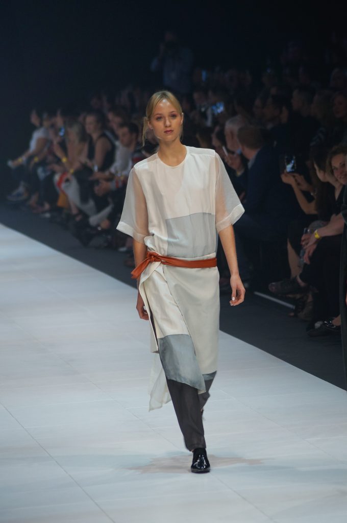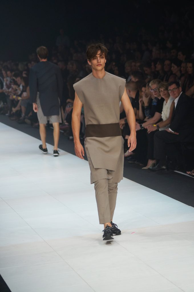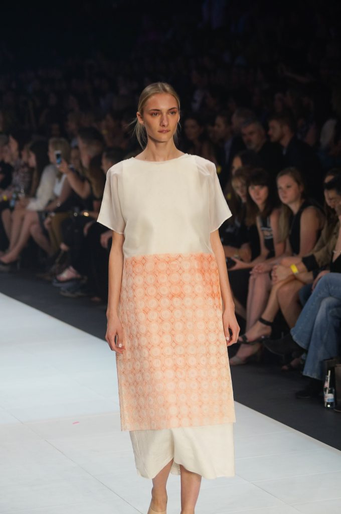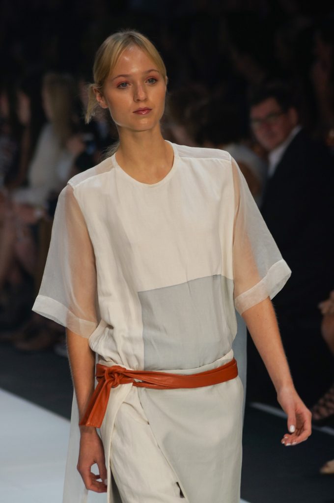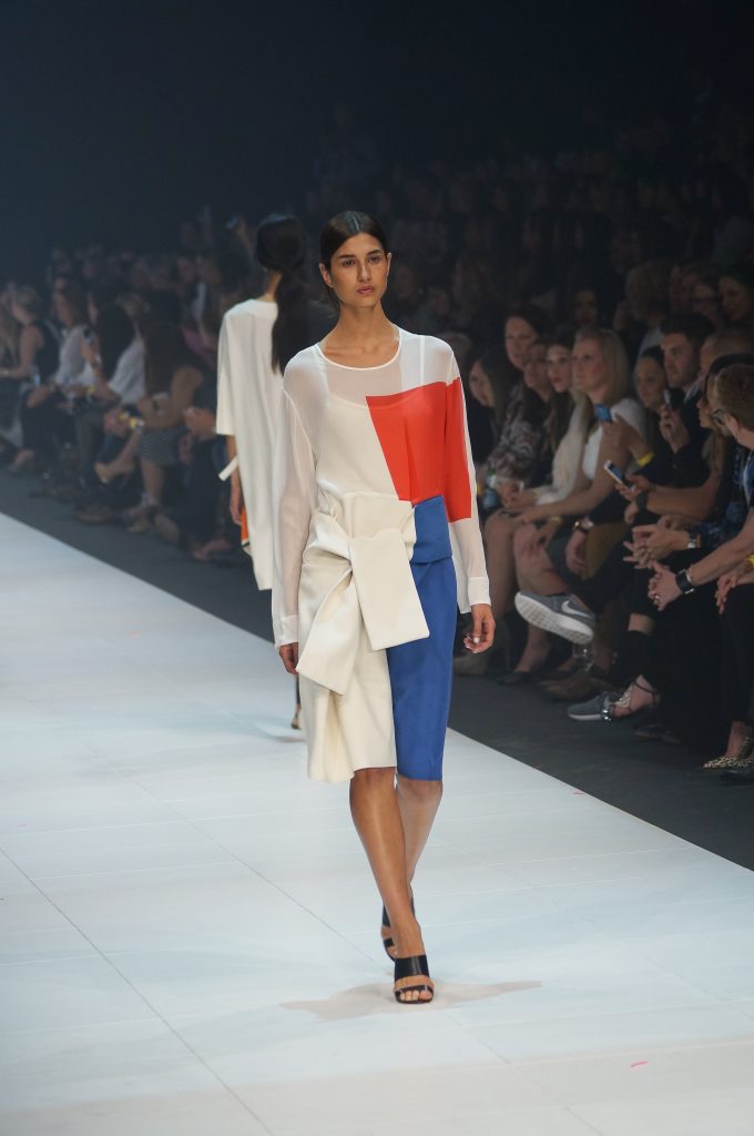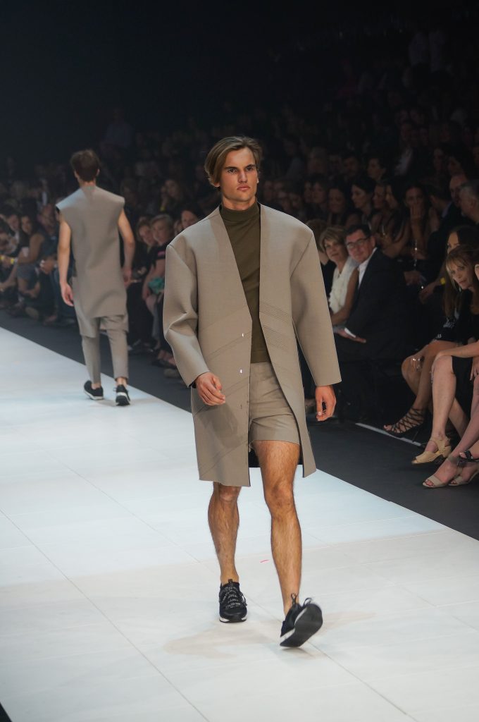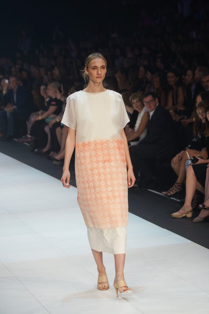 Felicity Gleeson was flowing and feminine, with mint green and neutral colours forming the base of her collection. Loose shift dresses and capes made up the basis of the silhouettes, making this collection one for the woman who wants fashion forward pieces, but with usability.