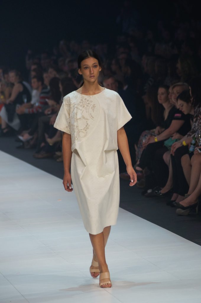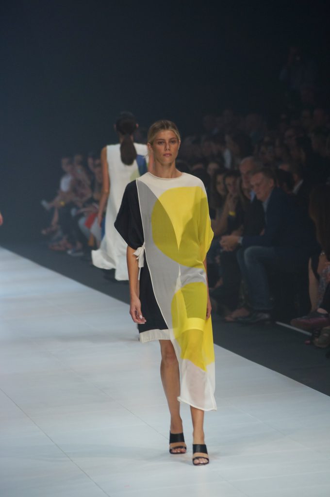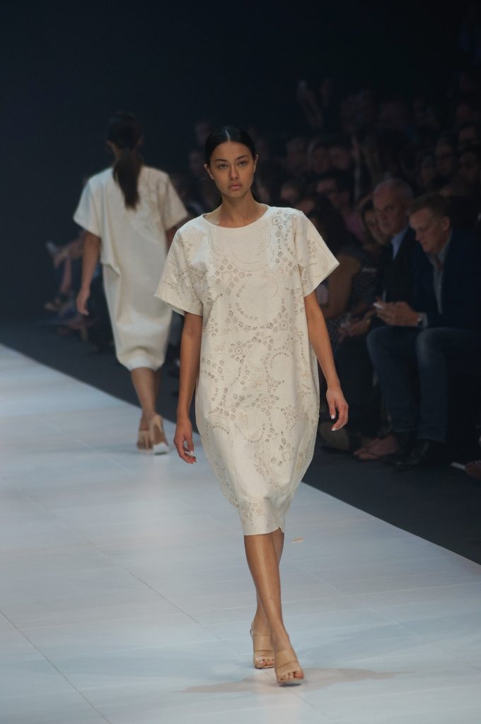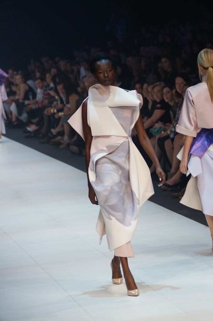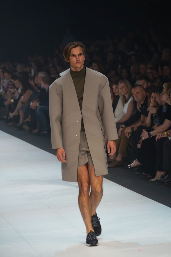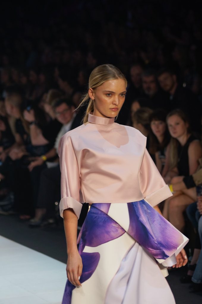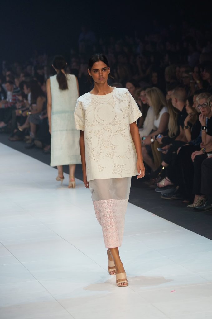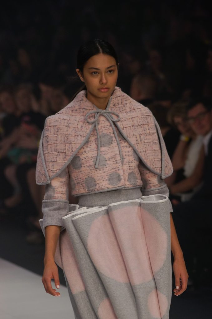 Felicity Gleeson was flowing and feminine, with mint green and neutral colours forming the base of her collection. Loose shift dresses and capes made up the basis of the silhouettes, making this collection one for the woman who wants fashion forward pieces, but with usability.