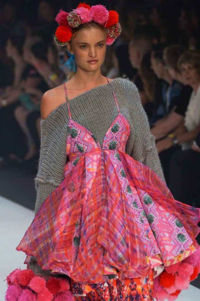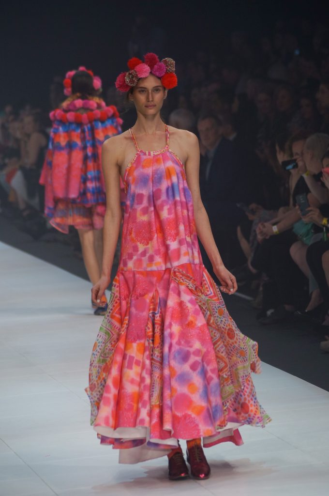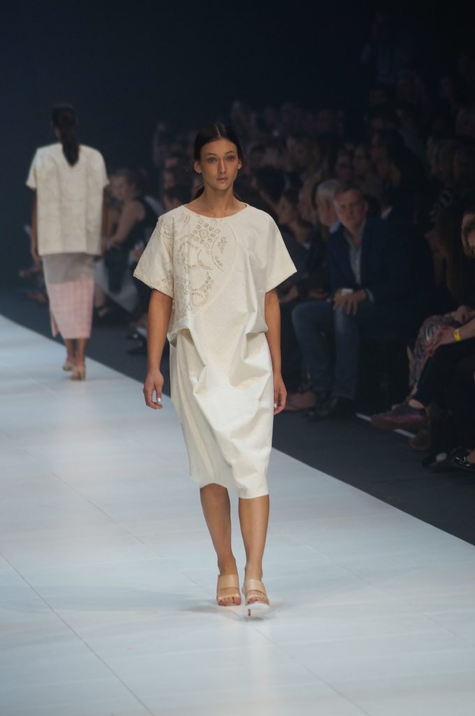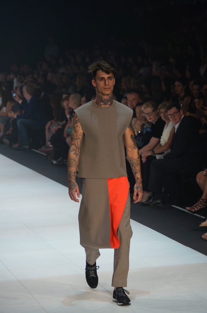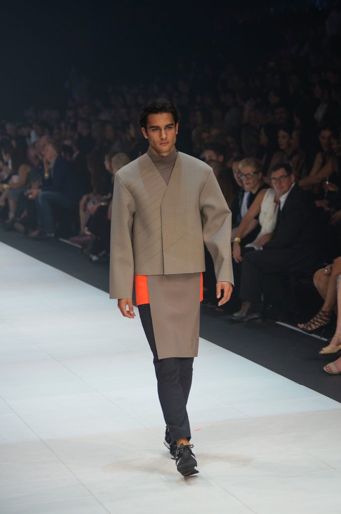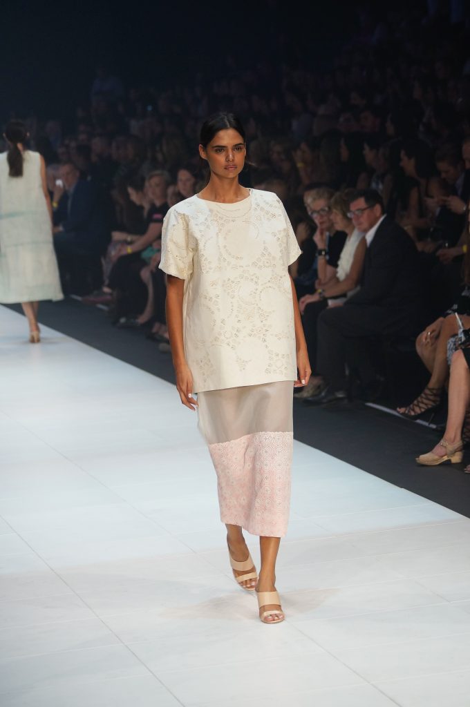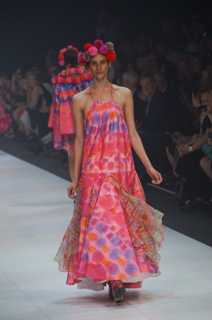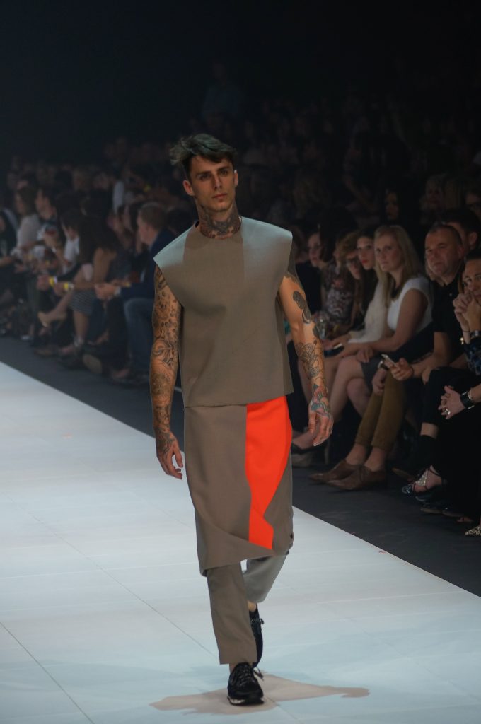 Felicity Gleeson was flowing and feminine, with mint green and neutral colours forming the base of her collection. Loose shift dresses and capes made up the basis of the silhouettes, making this collection one for the woman who wants fashion forward pieces, but with usability.