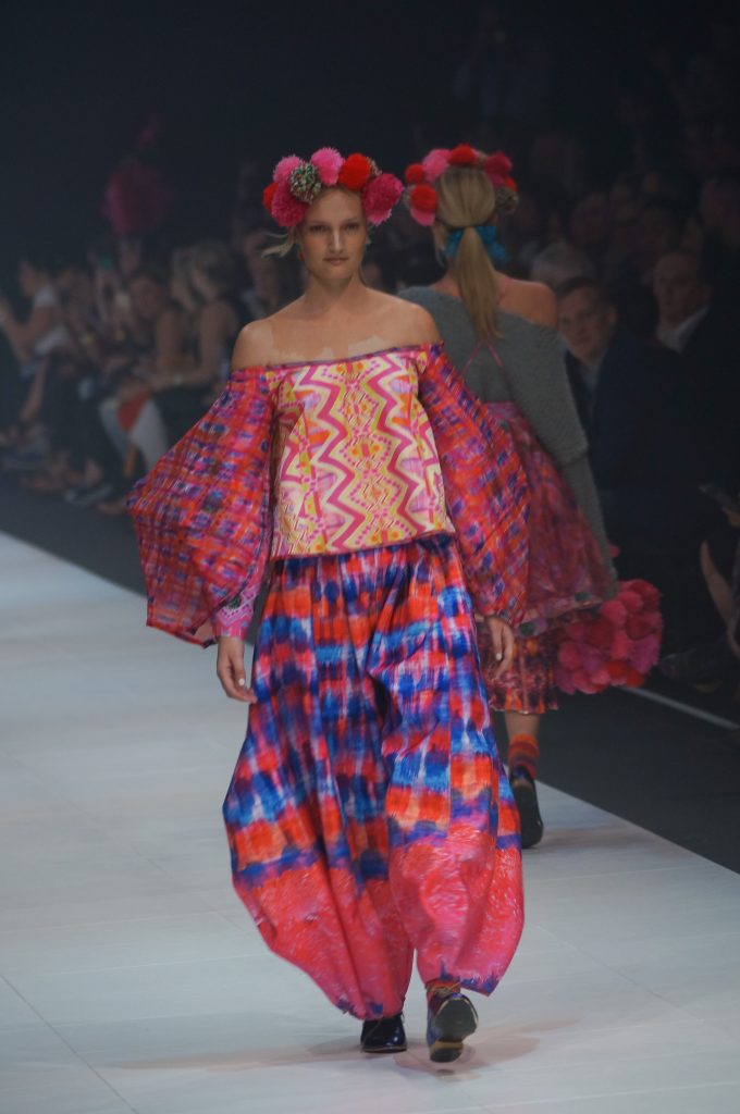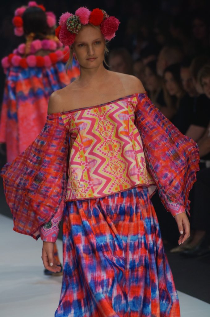 Sofie Teh took inspiration from the Hmong people and the sounds and sights of Vietnam. Accessories ranged from traditional floral garlands to interpretive patterns – all a nod to her heritage and all fashionably accessible.